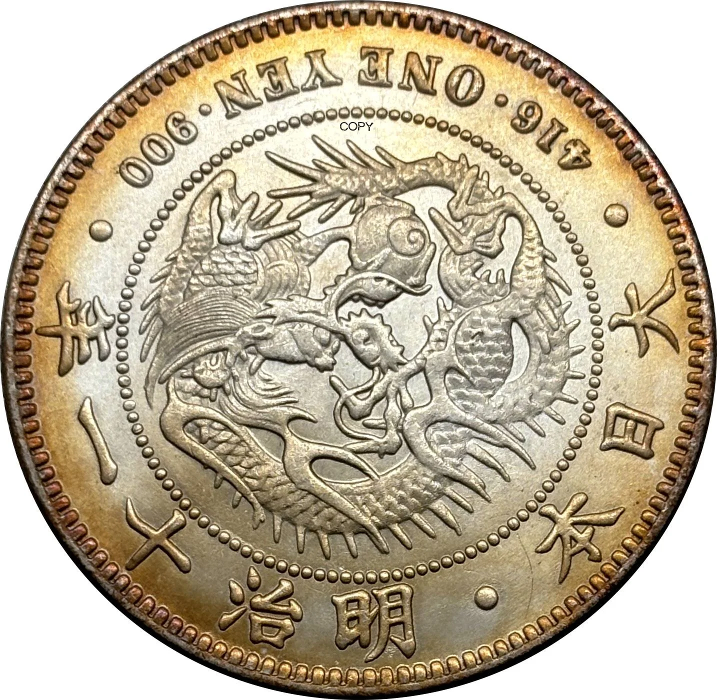 This silver-plated replica of the 1878 Japan 1 Yen features the iconic Meiji Dragon design, showcasing intricate engravings and ornamental motifs. Crafted with a durable silver plating, it has an antique imitation style that evokes historical elegance, complemented by a matte finish with subtle darker accents in the recesses. The multi-colored, black, and silver tones highlight the detailed craftsmanship, while its lightweight construction makes it easy to handle and display. Perfect for collectors and enthusiasts, this piece offers a refined blend of artistry and history, allowing you to own a stunning replica that celebrates Japan’s rich monetary heritage with style and sophistication.