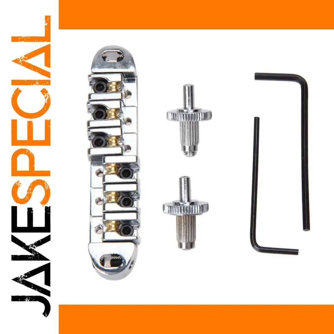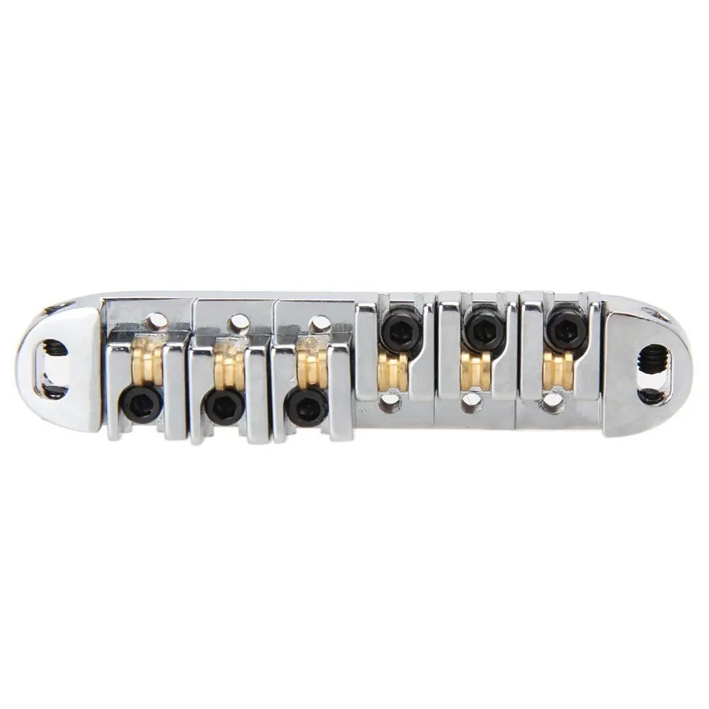 Imagine upgrading your electric guitar with this sleek, silver roller LP bridge tailpiece, crafted from durable alloy. Its polished finish and minimalist design enhance the instrument’s aesthetic while offering precision tuning. The contrasting brass-colored contact points add a warm touch of elegance, seamlessly blending functionality with style. Designed specifically for LP-style electric guitars, this high-quality component measures 84.5mm in length and 17mm in width, ensuring a perfect fit. The ease of adjustment is made simple with knurled screws and included wrenches, allowing you to fine-tune your strings effortlessly. Whether you're customizing your guitar or replacing a worn part, this bridge provides both durability and sophistication, elevating your playing experience to professional levels.