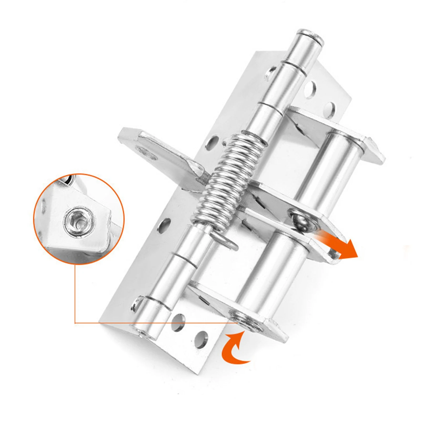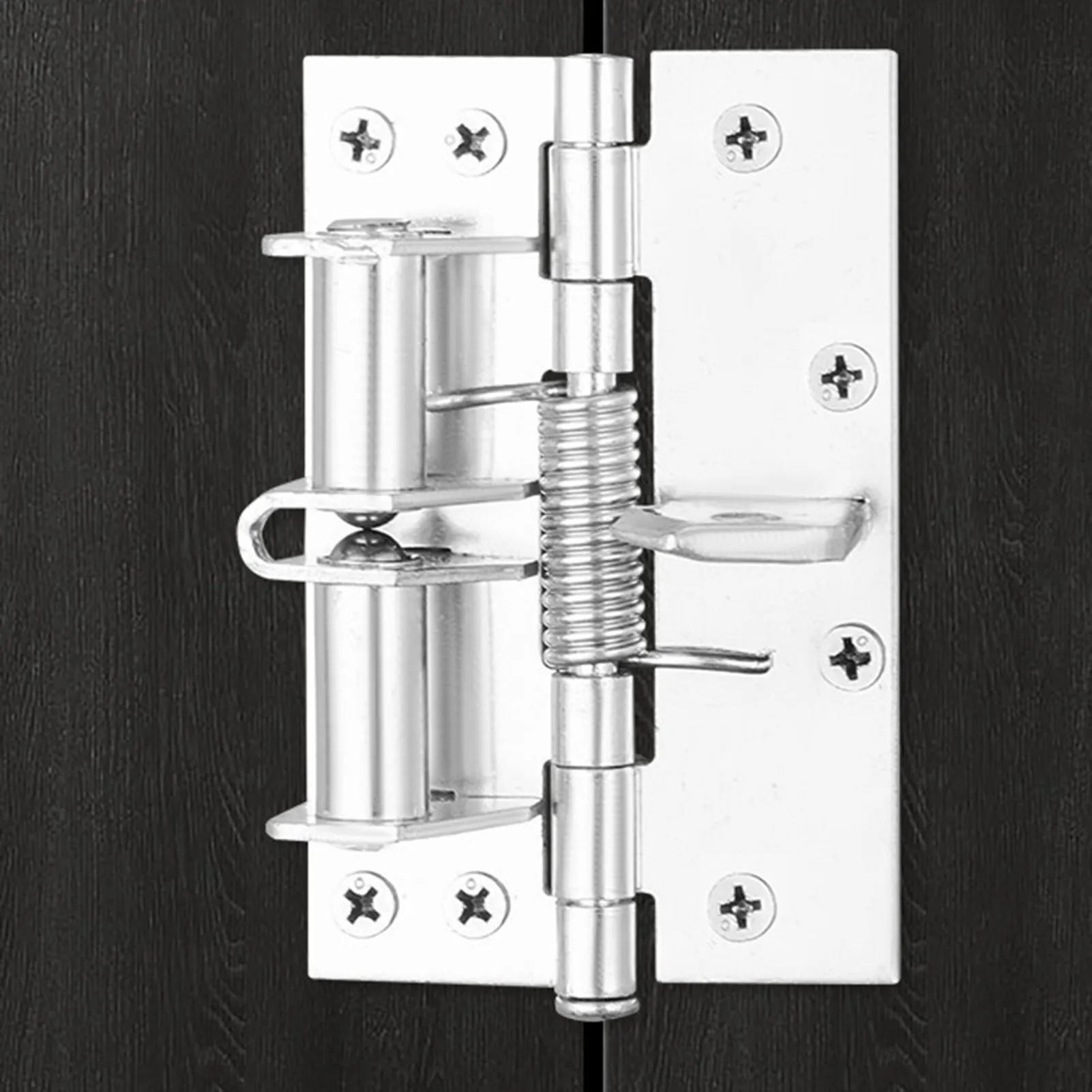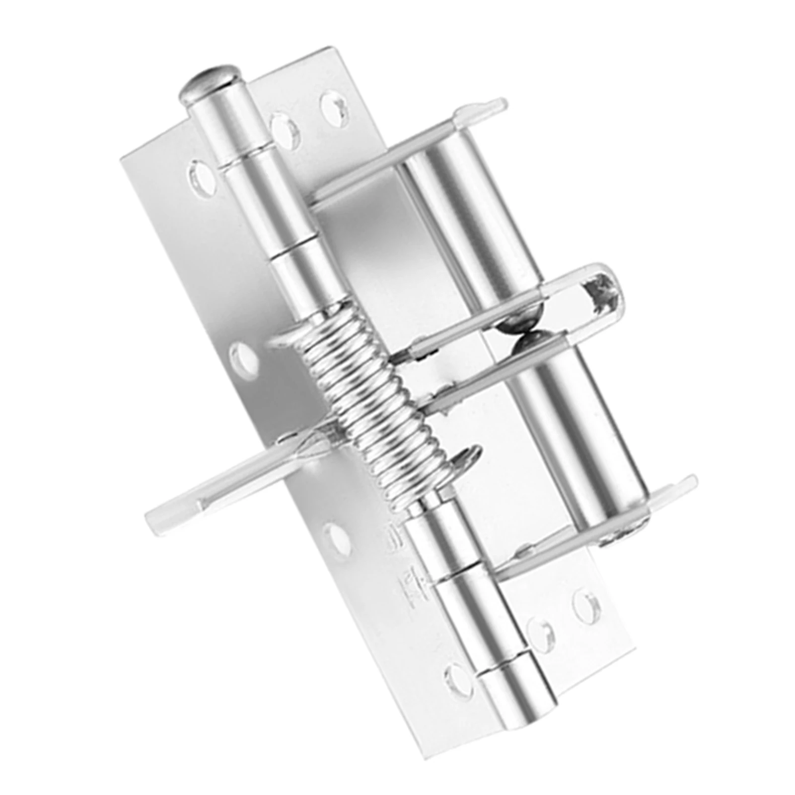 Experience the perfect blend of functionality and aesthetics with this high-quality, silver-colored self-closing door hinge. Crafted from durable steel, it features a polished, reflective finish that adds a modern touch to any door. Its minimalist design includes a rectangular mounting plate with precise screw holes, seamlessly concealing the mechanism after installation for a clean appearance. The hinge’s built-in spring buffer guarantees a slow, gentle door closing, preventing noise and impact. With a smooth, automatic positioning feature, it locks doors beyond 90 degrees, providing reliable hold-open capability. Ideal for residential or commercial use, this 4-inch hinge offers a sturdy, elegant solution for various door weights and styles, ensuring both safety and aesthetic appeal in your space.