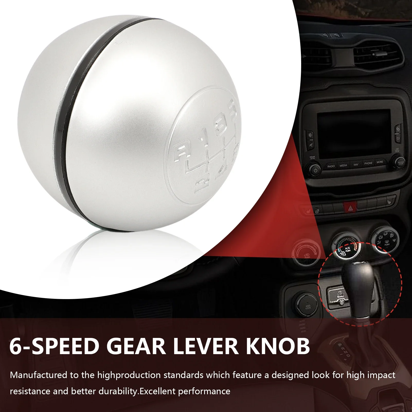 - The embossed gear pattern at the top clearly displays 1-6 and R, providing quick, easy reference during driving, with a sleek spherical shape for ergonomic operation.