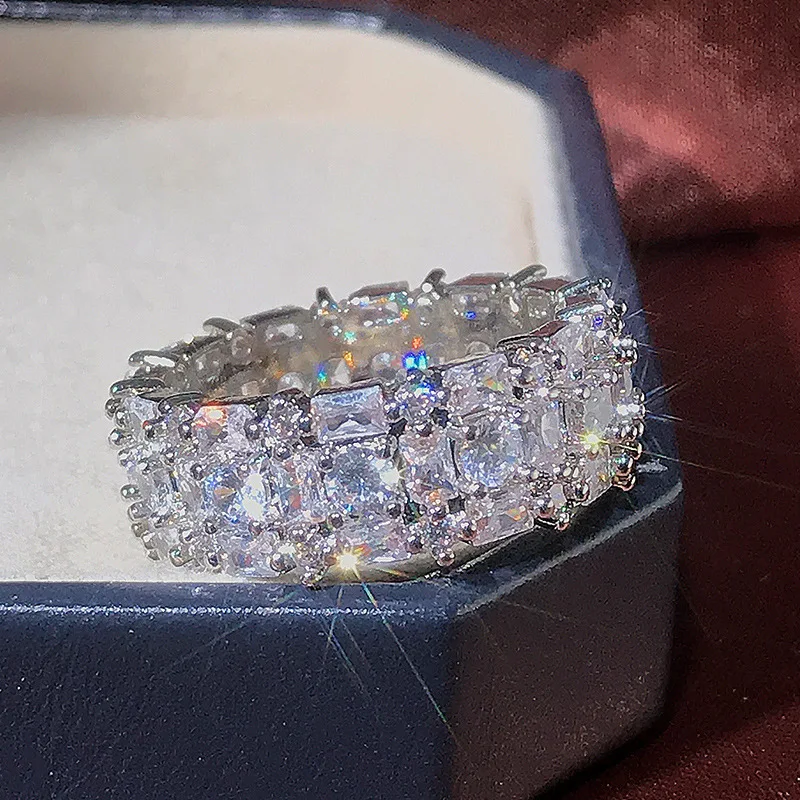 - Technical specifications: high-quality AAA mosaic CZ stones, bezel setting, silver-filled metal, weight of 7 grams, sizes 6-10, designed for women’s jewelry needs.