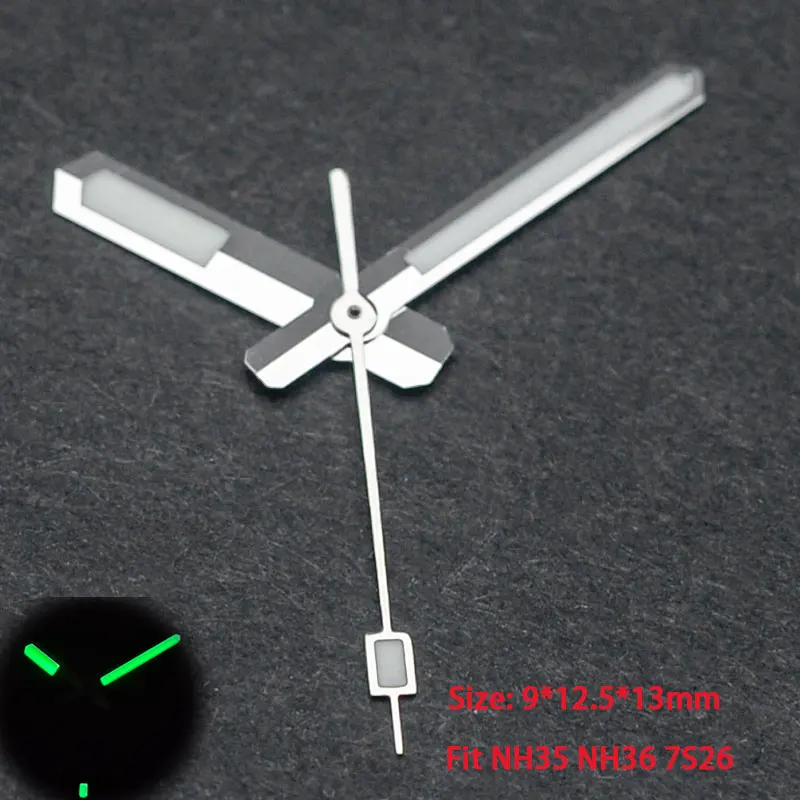 - These silver-colored hands measure 9.0*12.5*13.0 mm, fitting perfectly with NH35, NH36, 4R36, and 7S26 automatic movements, ensuring compatibility for a variety of watch models.