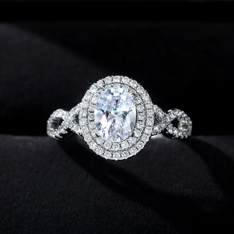 - The band showcases detailed openwork with delicate twists, embedded with tiny stones that exude glamour and attention to craftsmanship.