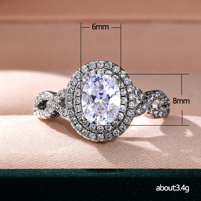 - Features a large, round zircon stone in white, surrounded by a brilliant halo of smaller white zircon crystals that create a luxurious, sparkling effect perfect for enhancing any outfit.