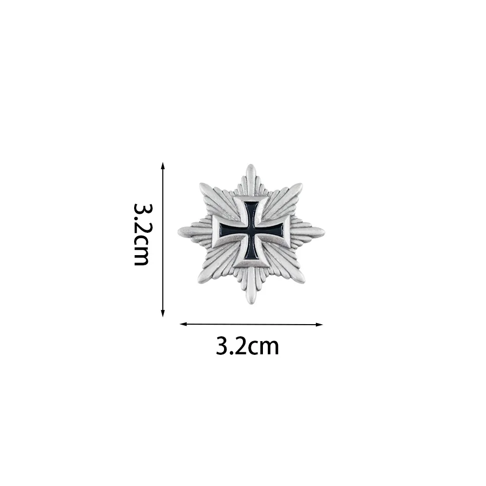 This Silvery Cross Brooch exudes charm and character, featuring a distinct octagonal shape adorned with pointed edges that create an eye-catching star-like effect. The brooch is crafted from a durable alloy material, ensuring longevity while maintaining a stylish appearance. A matte black central cross contrasts beautifully with the shimmering silver alloy, while intricate feather-like embellishments enhance its retro military vibe. Perfect for both men and women, this accessory can elevate any outfit, whether it be attached to jackets, backpacks, hats, or used for DIY clothing projects. Its compact yet substantial design makes it a standout piece in any collection.