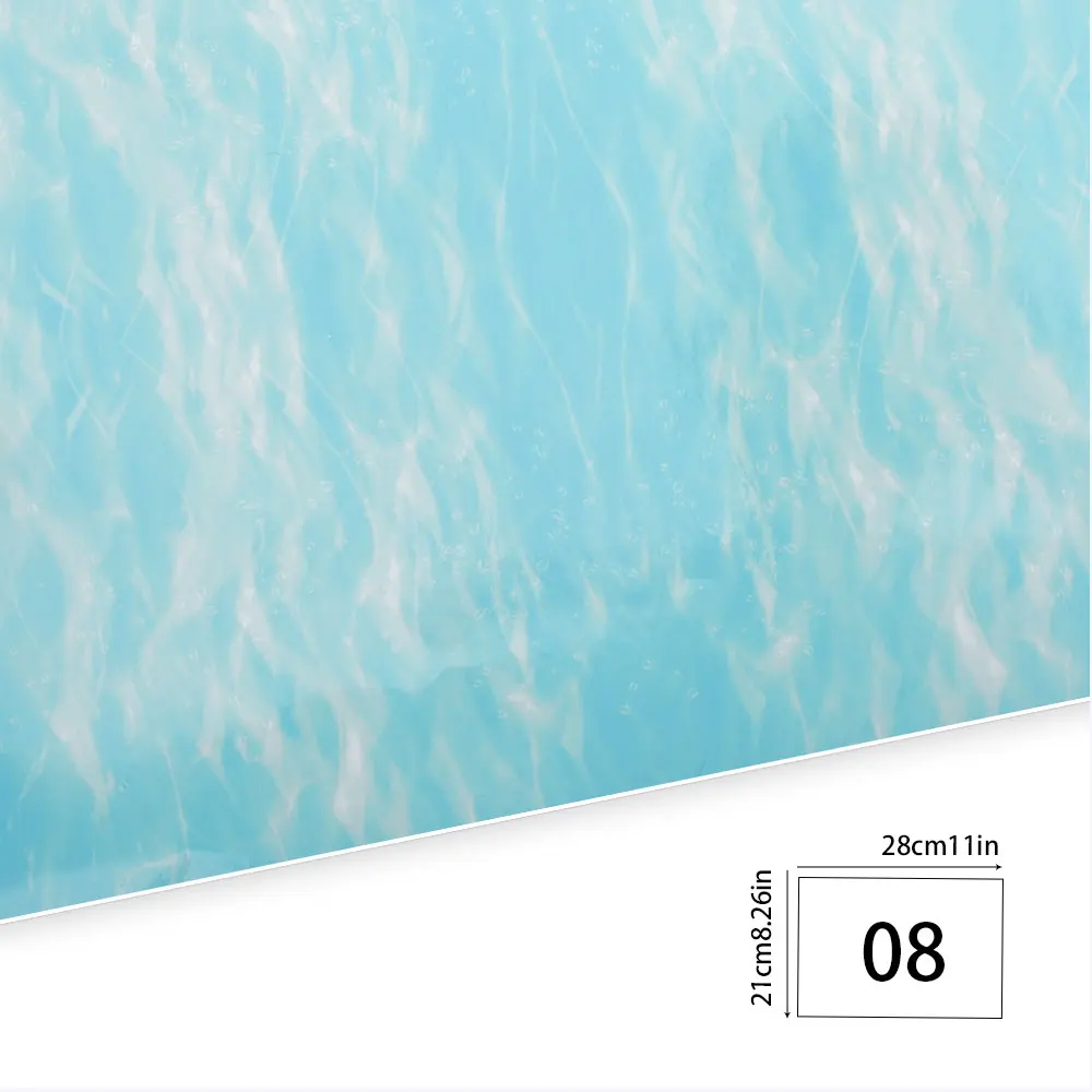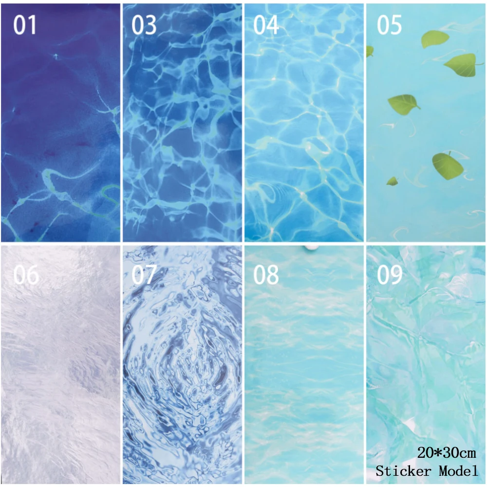 Enhance your model scene layouts with this set of 3 simulation water ripple texture stickers, each measuring approximately 20cm x 30cm. Crafted from durable ABS material, these stickers (model number MT1-5-WATER) replicate flowing water lake surfaces for lifelike detailing in your projects. The total item size is 28cm x 55cm, providing ample coverage. Each sticker showcases unique water surface designs, including glossy finishes and swirling patterns, enhancing realism. For optimal visual effects, it is recommended to place a blue sheet underneath. Slight size variations may occur due to production differences. Perfect for aspiring creators and enthusiasts alike!