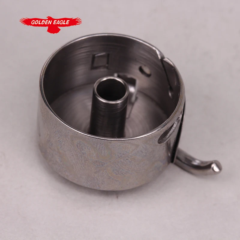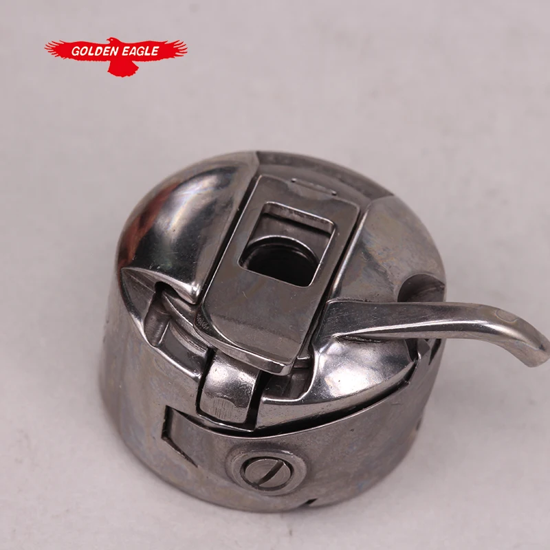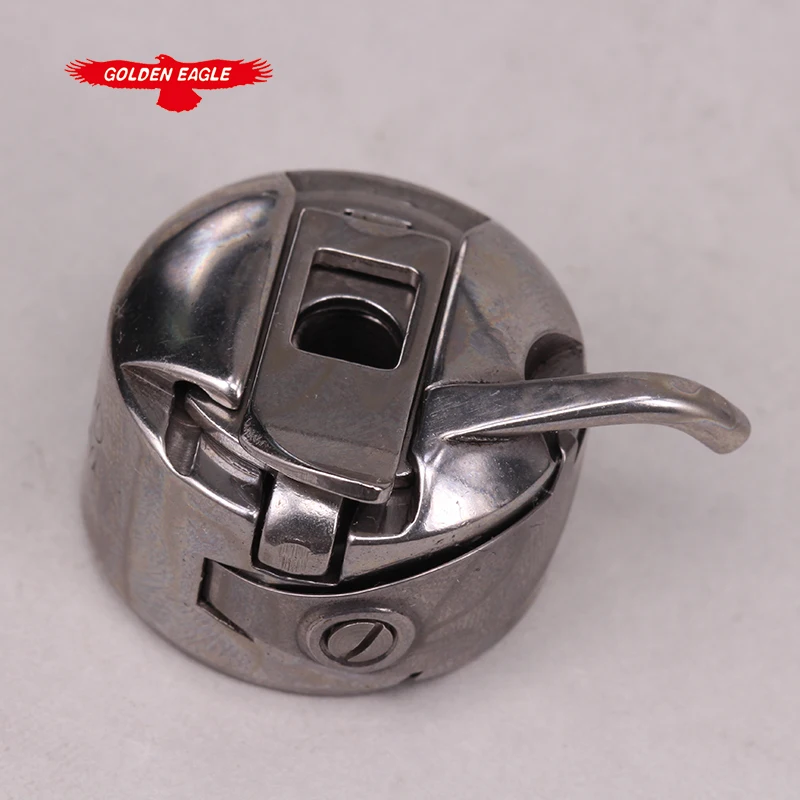 - Features a curved latch or clip integrated into the body to securely lock the bobbin case in place within flat-bed, walking foot industrial sewing machines.