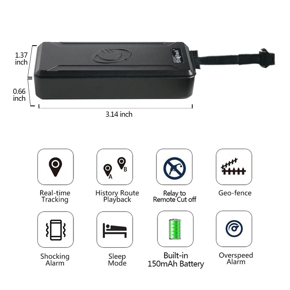 The SinoTrack ST-901AL 4G+2G Car GPS Tracker is an advanced real-time tracking device designed for motorcycles and vehicles. Operating on a 12V power supply with a consumption of just 0.02W, it boasts a battery life of 1 to 4 hours. Key features include GPRS/SMS connectivity, main power-off alarm, ignition detection (ACC), overspeed alerts, and theft protection with a built-in backup battery. This versatile tracker enables remote oil and electricity cutoff via SMS and supports multiple devices on a single account for fleet management. Compatible with the SinoTrack PRO app, it offers a lifetime free tracking platform without hidden fees.