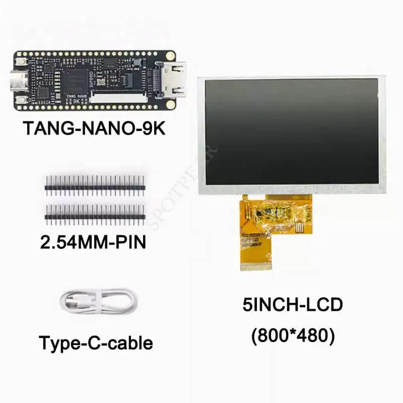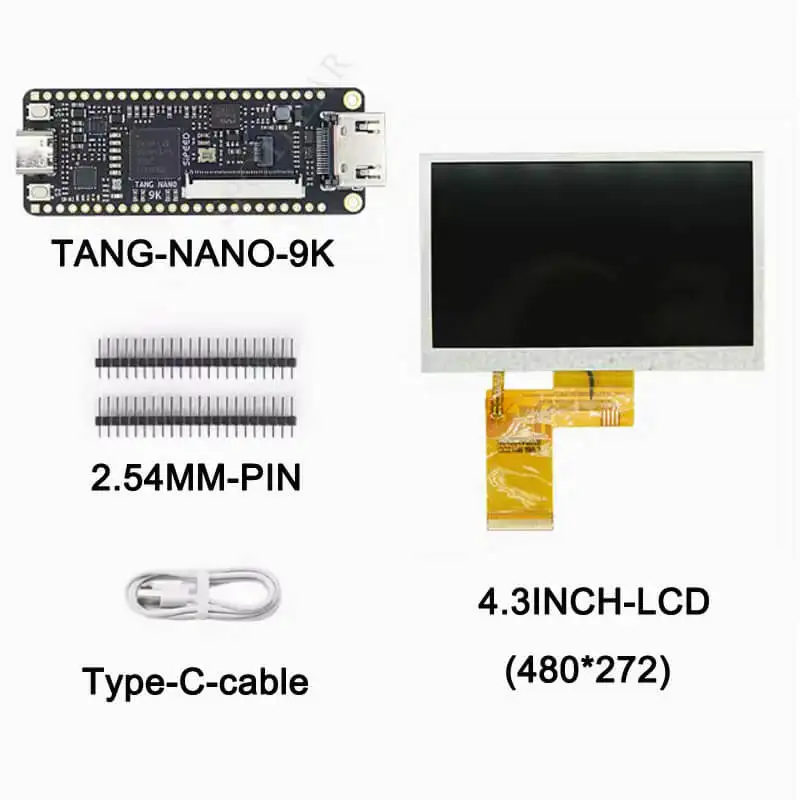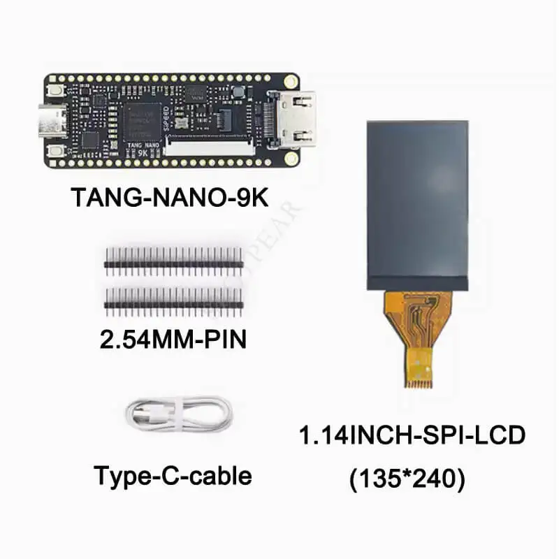 Experience advanced FPGA development with the Sipeed Lichee Tang Nano 9K GW1NR-9 Board, featuring a sleek, black rectangular design with gold-plated pins along the edges for easy connectivity. The board is equipped with a central GW1NR-9 FPGA chip and onboard BL702 support for USB-JTAG and USB-UART interfaces, enabling straightforward programming via USB-C connection—no additional downloaders or wiring needed. Choose from multiple LCD options: a 1.14-inch SPI display (135×240 pixels), 4.3-inch bare screen (480×272 pixels), 5-inch bare screen (800×480 pixels), or 7-inch bare screen (800×480 pixels). Compact, efficient, and perfect for high-performance FPGA projects.