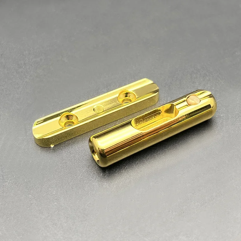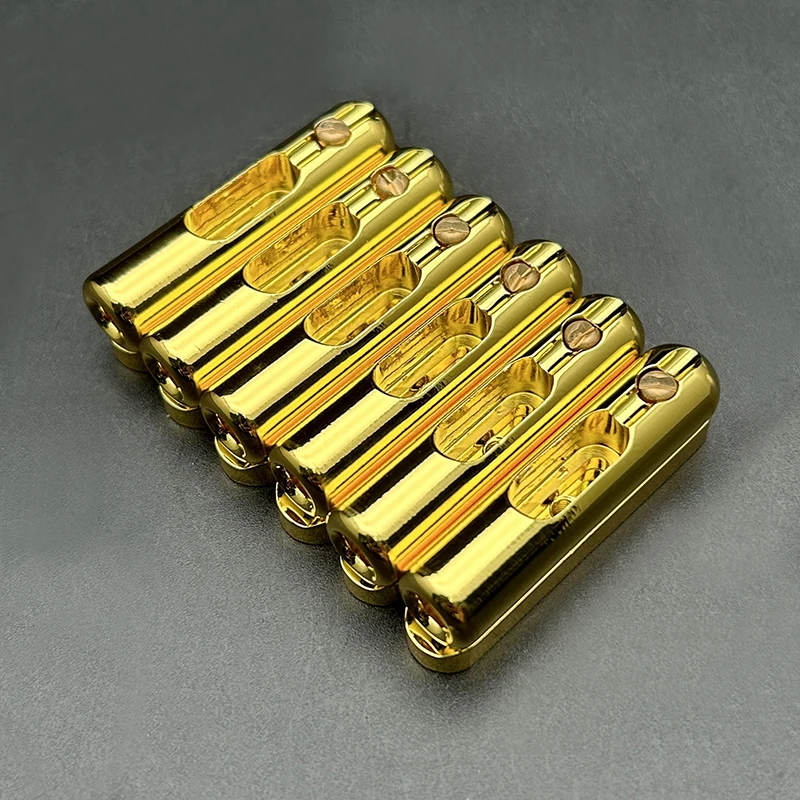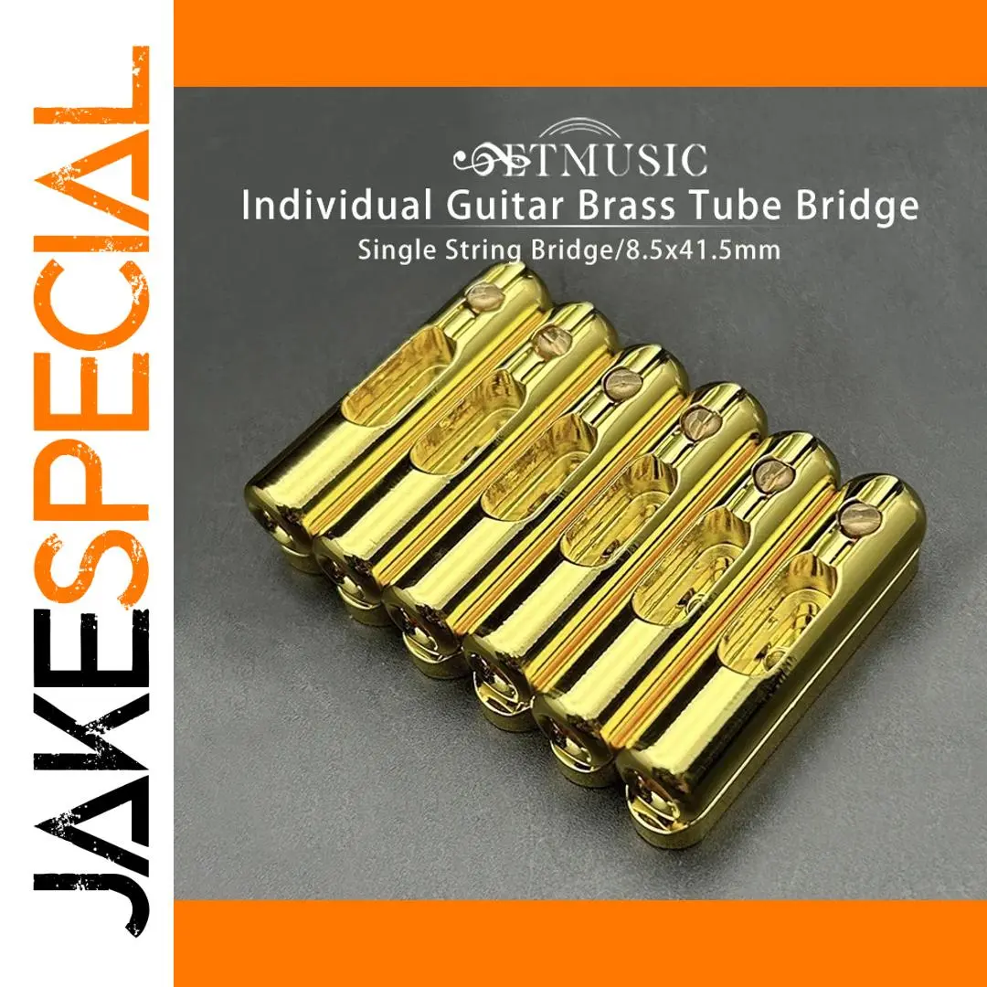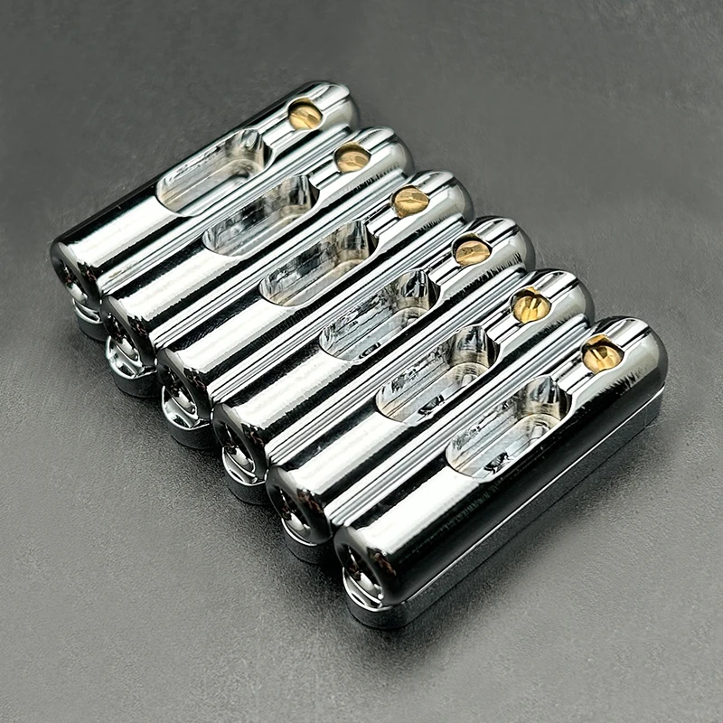 Step into a world of precision and sleek design with this premium set of six individual guitar bridges. Crafted from durable zinc and brass, each bridge measures 8.5×41.5mm and features a carefully drilled 2.5mm hole for single-string installation. The minimalist rectangular shape with rounded edges ensures a clean, refined look that complements any guitar style. Available in shiny gold, polished chrome, and matte black finishes, these bridges offer both aesthetic versatility and exceptional craftsmanship. Their bottom through-mount design ensures easy and secure installation, making them ideal for customizing and enhancing your guitar’s performance and appearance. Whether you're upgrading or building, these bridges promise durability, style, and precision.