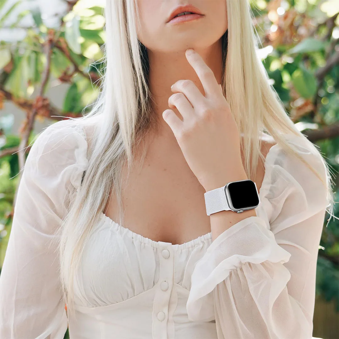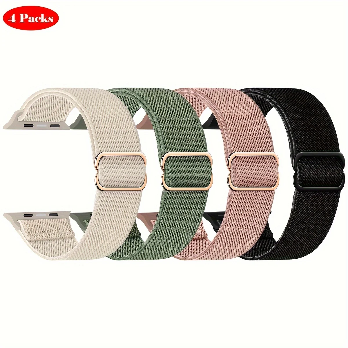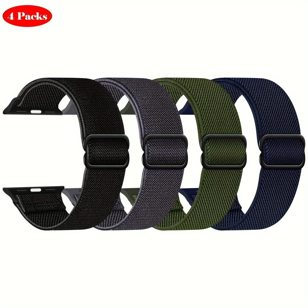 Elevate your Apple Watch experience with this set of four stretchy nylon watch straps, compatible with models including Ultra, Ultra 2, and Series 10 through 1 and SE. Designed for sizes 38mm to 49mm, each strap features a breathable, skin-friendly nylon material that is sweat-wicking, quick-drying, lightweight, and durable. The adjustable stainless-steel slider ensures a secure, personalized fit for wrist sizes from 4.5″ to 8.7″. Available in four versatile colors, these stylish, functional straps seamlessly suit daily activities, workouts, or casual outings, combining modern minimalism with exceptional comfort and resilience for the discerning Apple Watch owner.