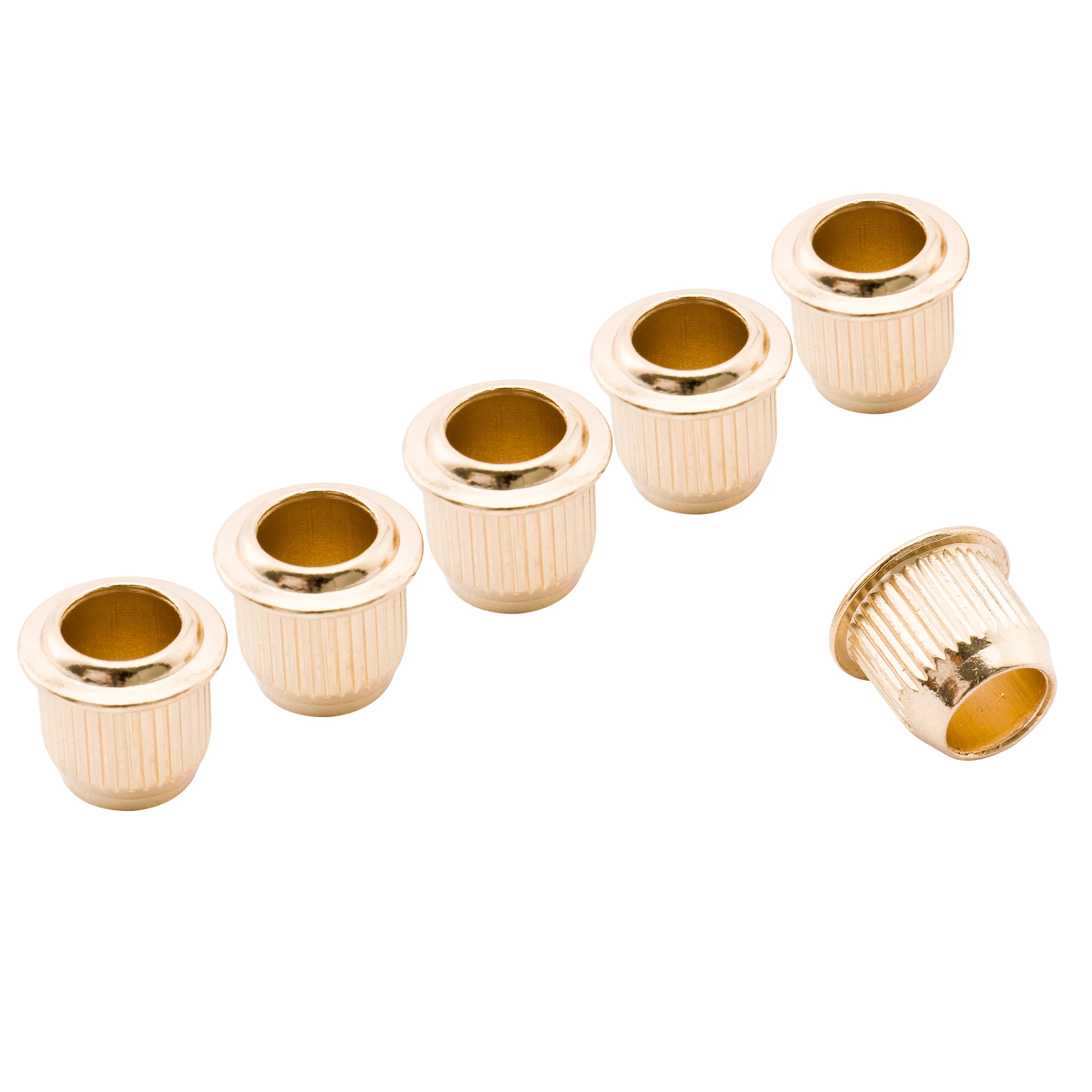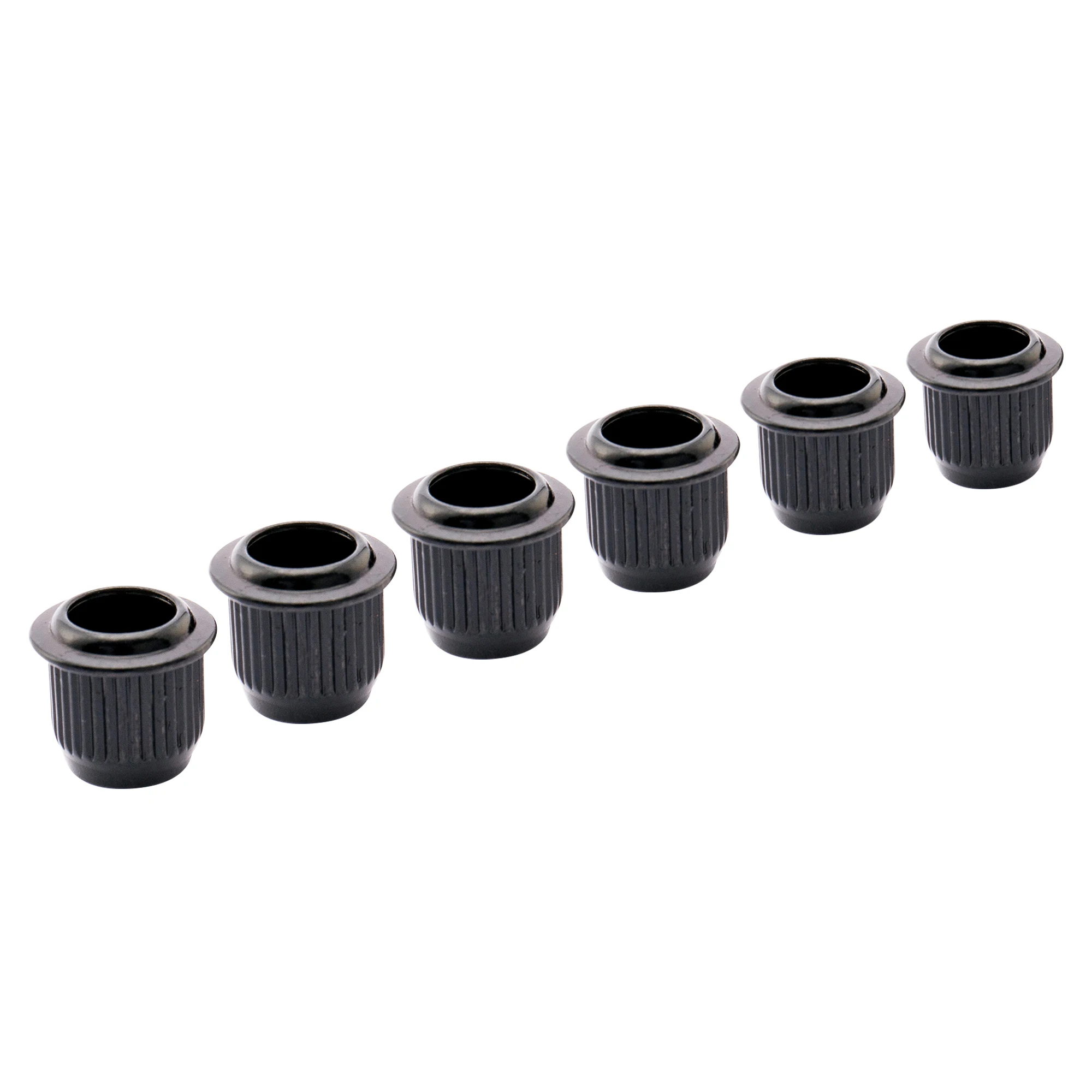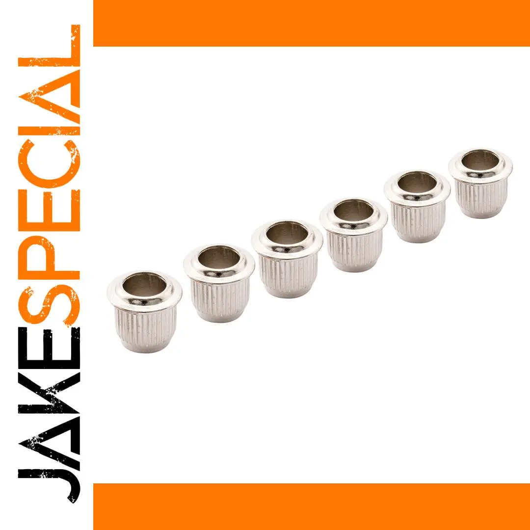 Upgrade your vintage-style electric guitar tuners with this set of six durable zinc alloy bushings, featuring an outer diameter of 9mm (23/64 inch) and an inner diameter of 6mm (15/64 inch). Designed to fit tuner posts up to 6mm, these textured bushings provide a secure fit and a sleek, metallic look in black, chrome, gold, or nickel. Their ribbed exterior ensures a firm grip while the smooth, rounded tops add a classic touch. Ideal for restoring or customizing your guitar’s tuning pegs, these high-quality components enhance both function and style, making tuning more precise and reliable for your vintage-inspired guitar.