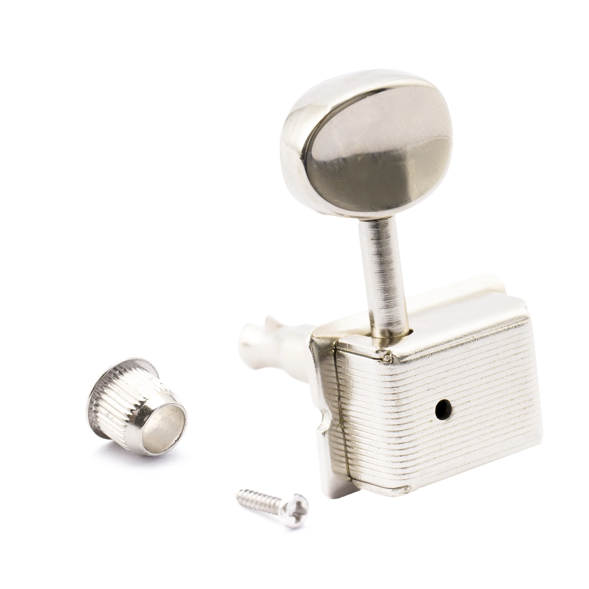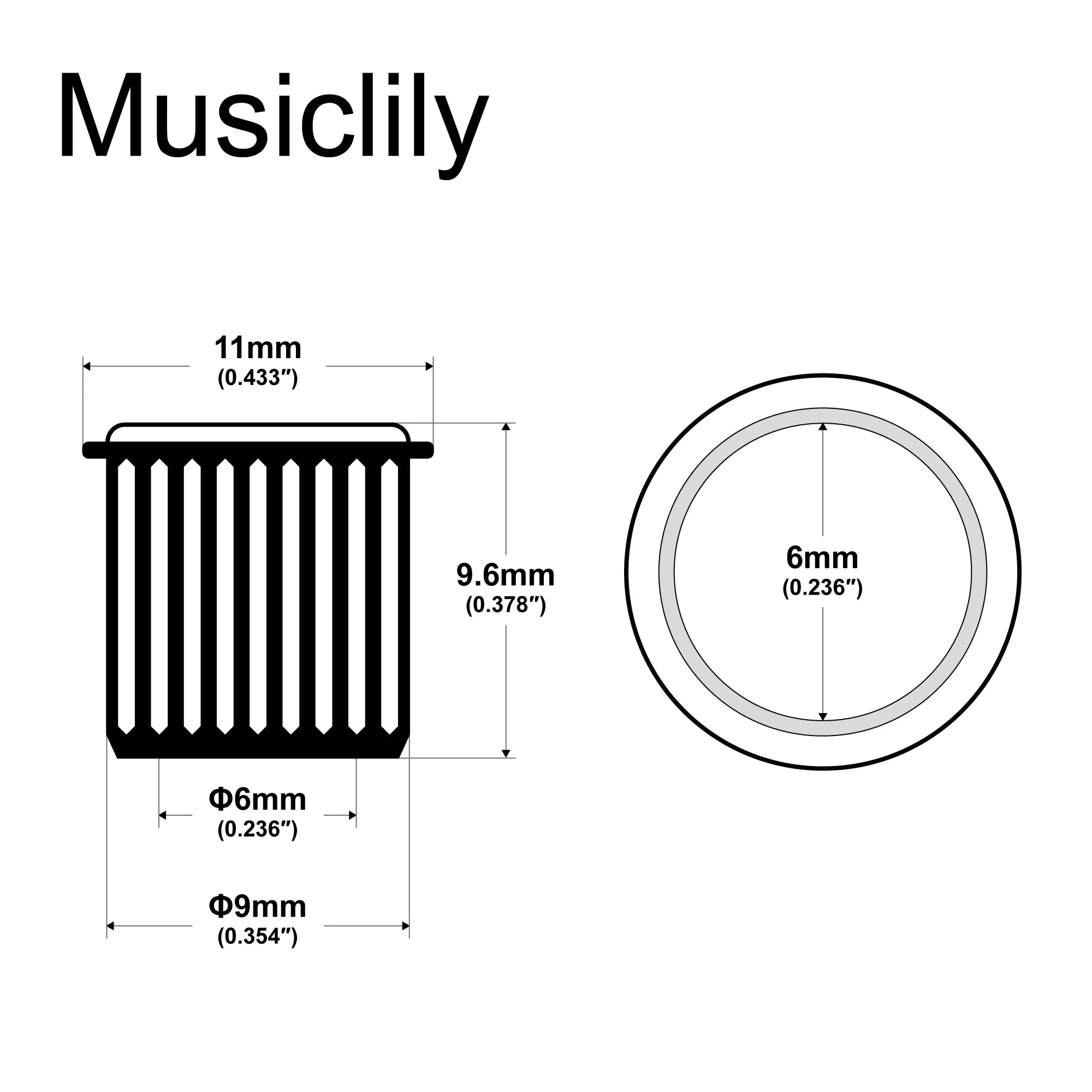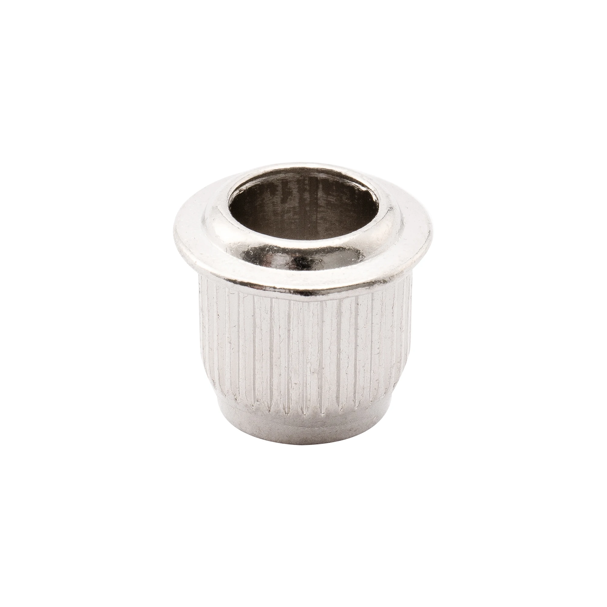 Upgrade your vintage-style electric guitar tuners with this set of six durable zinc alloy bushings, featuring an outer diameter of 9mm (23/64 inch) and an inner diameter of 6mm (15/64 inch). Designed to fit tuner posts up to 6mm, these textured bushings provide a secure fit and a sleek, metallic look in black, chrome, gold, or nickel. Their ribbed exterior ensures a firm grip while the smooth, rounded tops add a classic touch. Ideal for restoring or customizing your guitar’s tuning pegs, these high-quality components enhance both function and style, making tuning more precise and reliable for your vintage-inspired guitar.