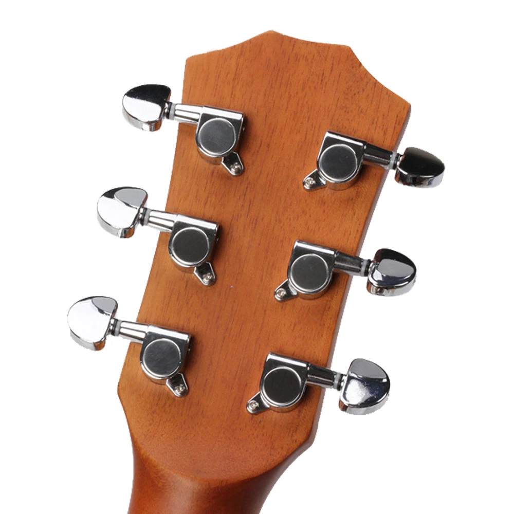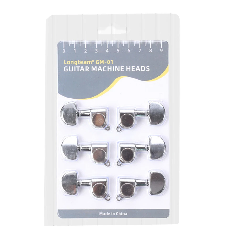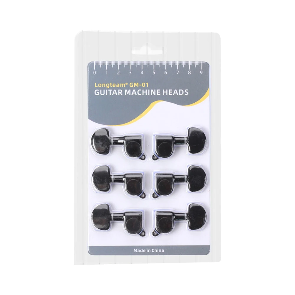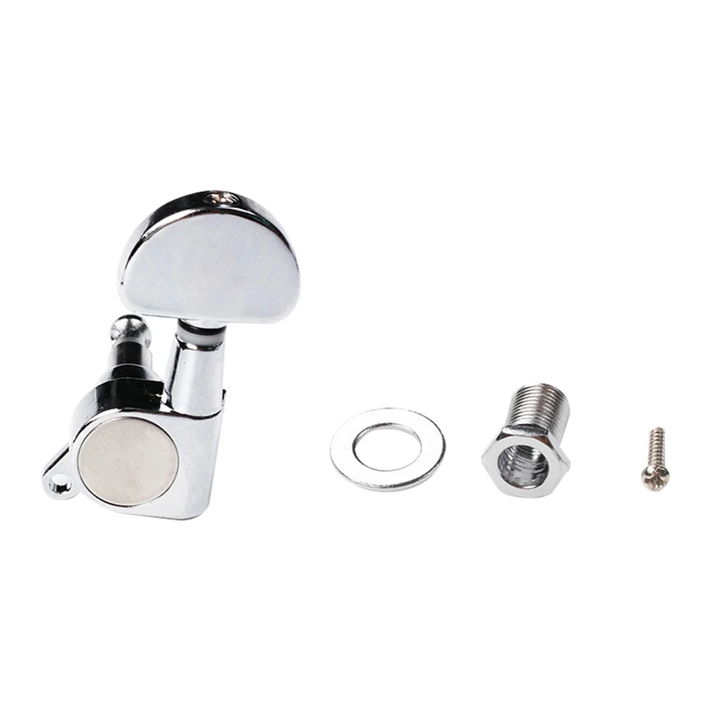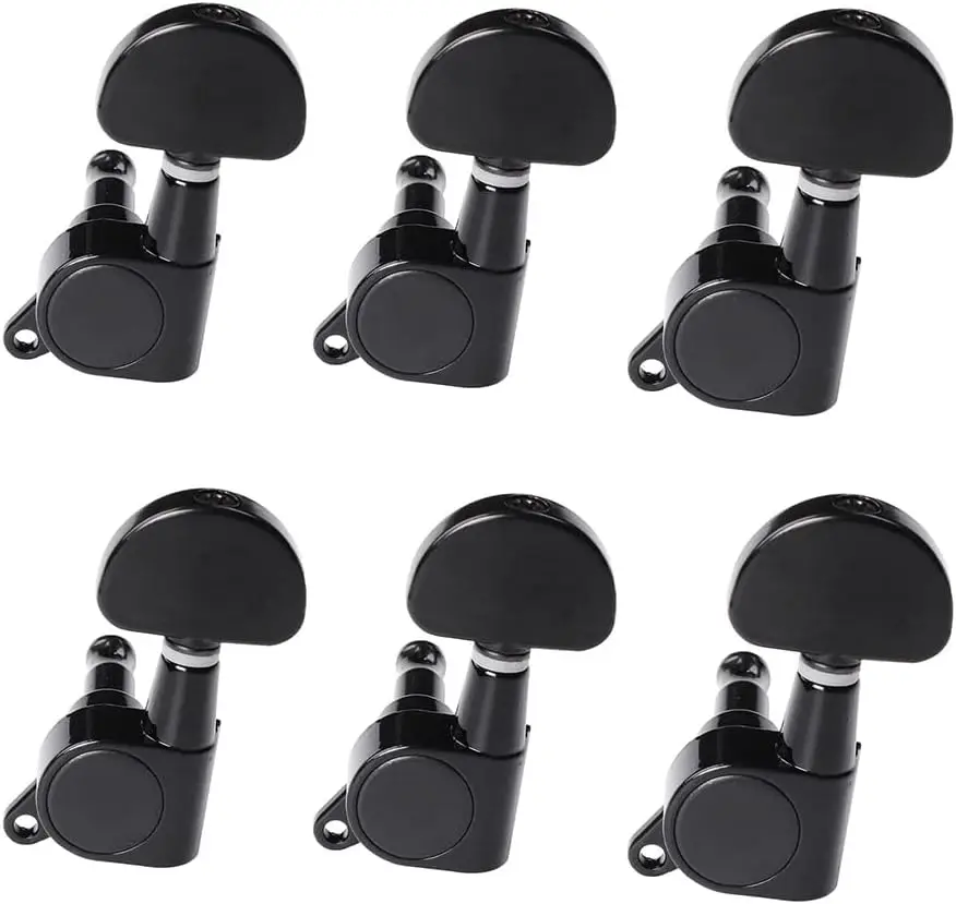 Experience seamless tuning with this set of six fully enclosed iron tuning pegs, designed for precision and durability. Featuring a sleek, polished metallic finish in silver and black, these tuning pegs elevate the aesthetic of your instrument while providing reliable performance. Their ergonomic semi-circular handles allow for effortless adjustments, making tuning faster and more accurate. The fully enclosed design shields internal gears from dust and debris, ensuring longevity. With a gear ratio of 15:1, each peg offers smooth, precise control over string tension, transforming your playing experience. Whether updating an existing guitar or customizing a new one, these pegs guarantee a professional look and feel that complements your musical style.