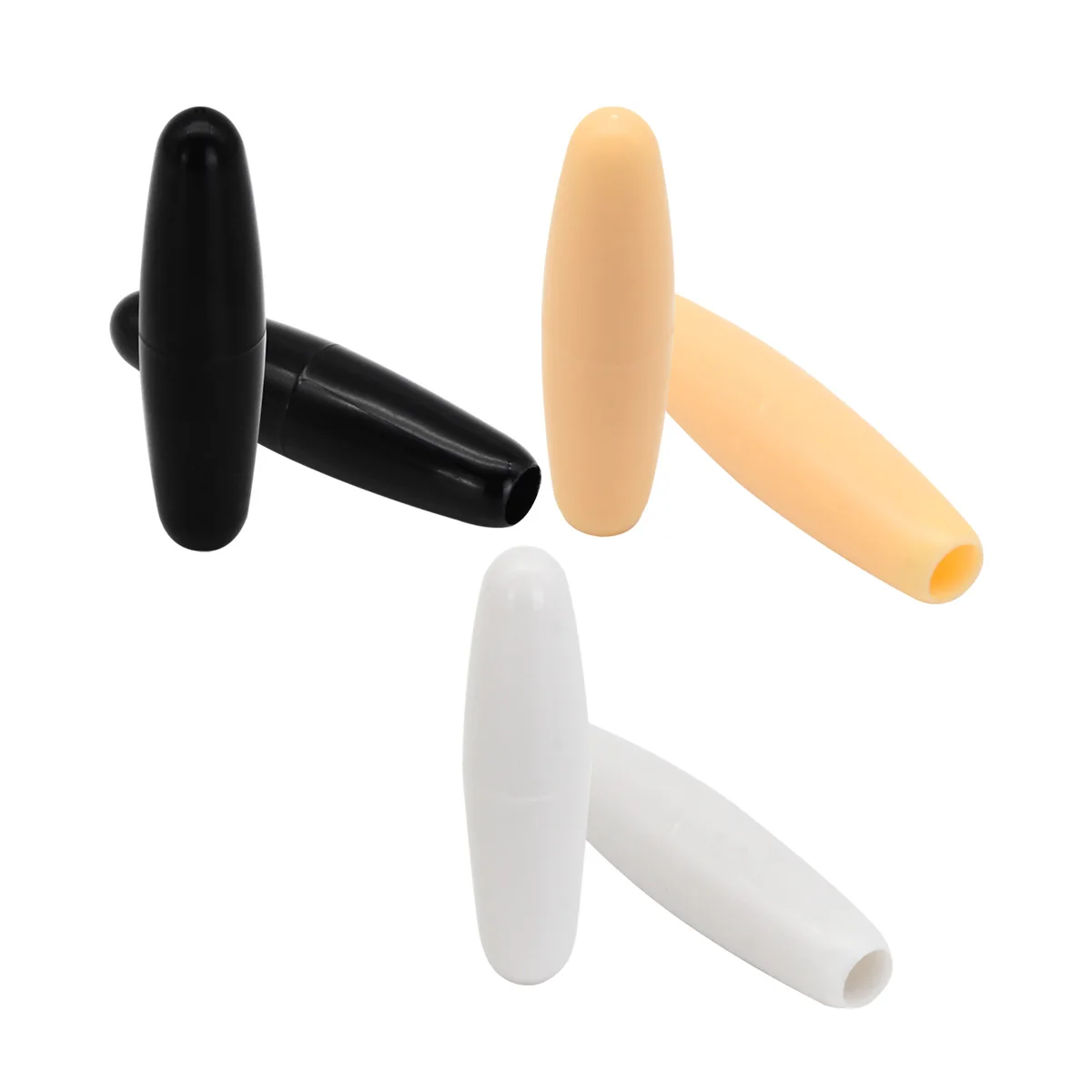 Enhance and customize your electric guitar with this set of six premium tremolo arm caps, designed for durability and style. Crafted from high-quality plastic with a sleek, glossy finish, these caps are available in black, white, and cream, allowing you to match your guitar’s aesthetic effortlessly. Their simple, elongated oval shape offers a modern, minimalist look that seamlessly integrates with your instrument. Each cap fits securely onto single tremolo or Strat-style bars, with an internal diameter of approximately 5mm, ensuring a snug fit. Whether you're replacing worn-out knobs or upgrading for style, these caps offer both functionality and visual appeal, giving your guitar a fresh, polished look.