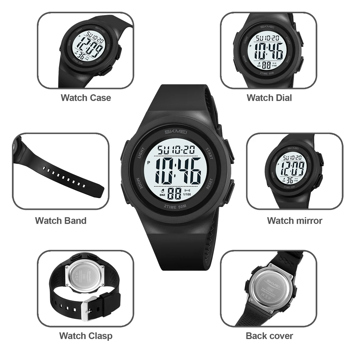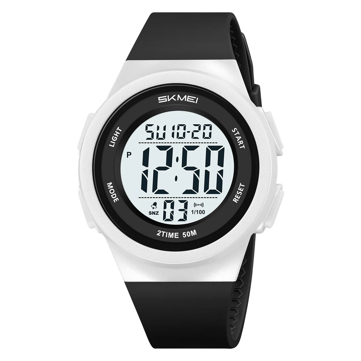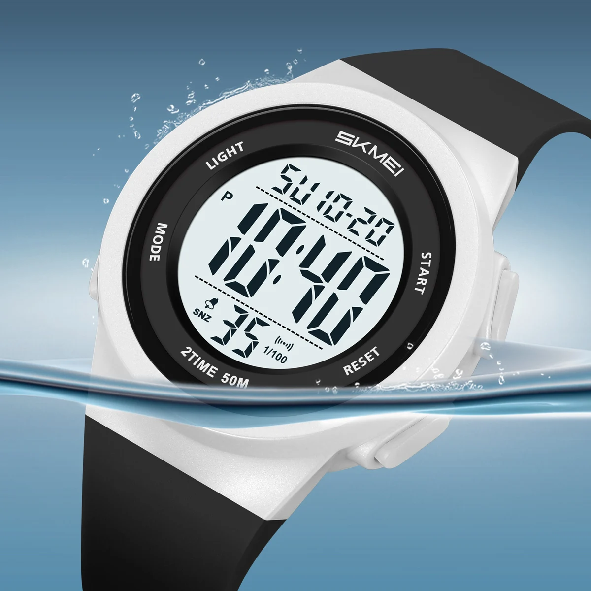 With the SKMEI 2286 digital sport watch, you can effortlessly blend practicality with style. This modern timepiece features a sleek round plastic case in a crisp white, with eye-catching red and navy blue accents that exude youthful energy. The large digital display not only shows the time but also highlights essential information like the date and features such as dual time, a chronograph, alarm, and a countdown timer. Its waterproof capability up to 5Bar (50m) ensures that it withstands various conditions, making it an excellent companion for your active lifestyle. Feel the comfort of the flexible silicone band, secured with a sturdy stainless steel buckle, perfect for all-day wear.