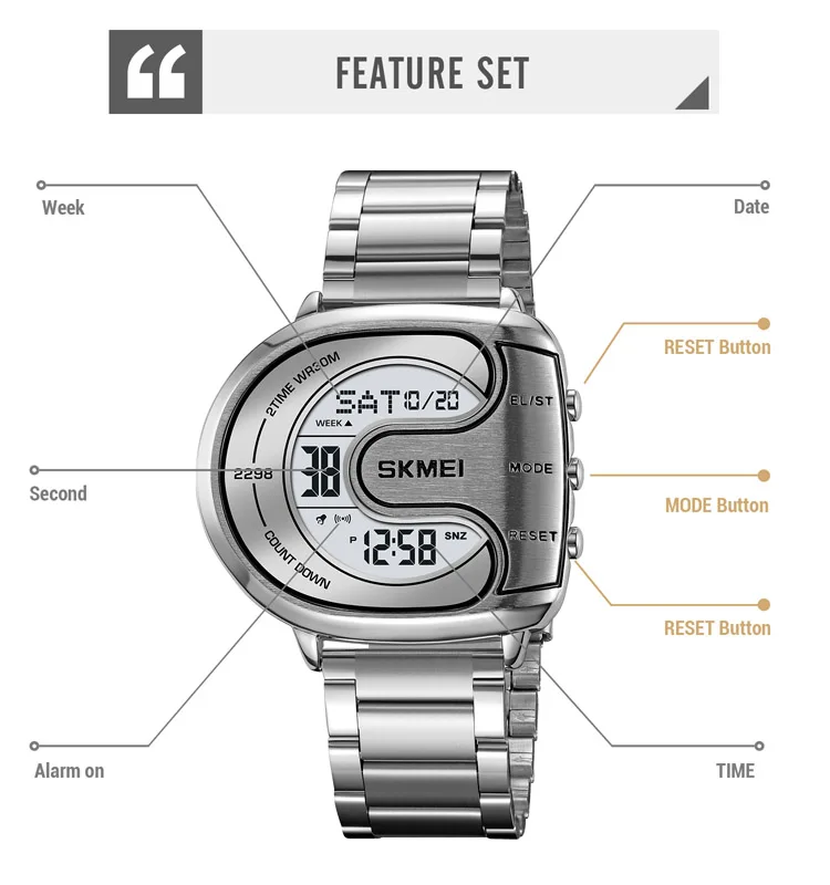 Bring home the SKMEI 2298 Digital Sport Watch and elevate your accessory game. With its blend of innovative features and modern style, this watch is not just a timekeeper but an essential part of your daily routine. Picture yourself wearing this sophisticated piece, receiving compliments while enjoying its full range of functionalities. Don't miss the chance to add this versatile watch to your collection; it’s the accessory you never knew you needed!