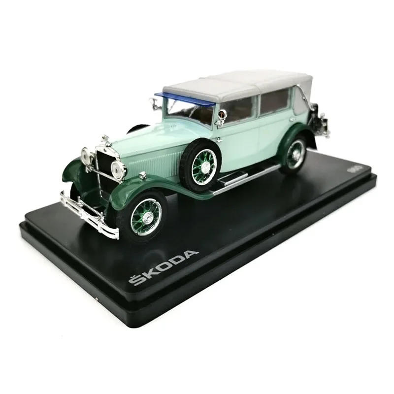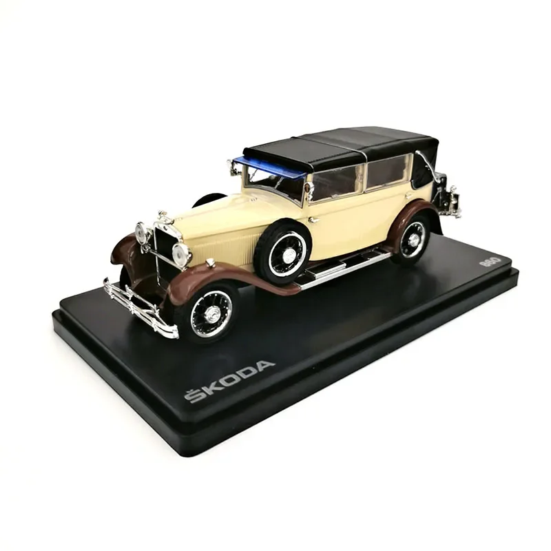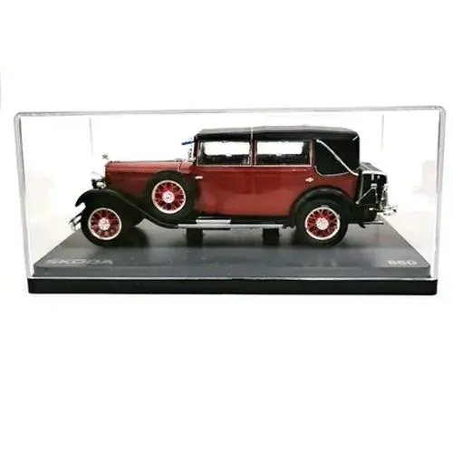 Immerse yourself in the timeless elegance of this detailed 1/43 scale Skoda 860 alloy retro classic car model. Measuring approximately 13 centimeters, its vibrant red body contrasts beautifully with black fenders, roof, and running boards, creating a striking visual appeal. The soft-top roof mimics fabric texture, enhancing its authentic vintage look. With intricately designed chrome front grille, round headlights, and side-mounted spare tires, this model showcases craftsmanship and attention to detail. The spoked wheels with red rims and chrome centers tie the design together, while chrome accents on bumpers and mirrors add a touch of sophistication. Perfect for collectors or as a decorative piece, it's a stunning display of classic automotive artistry.