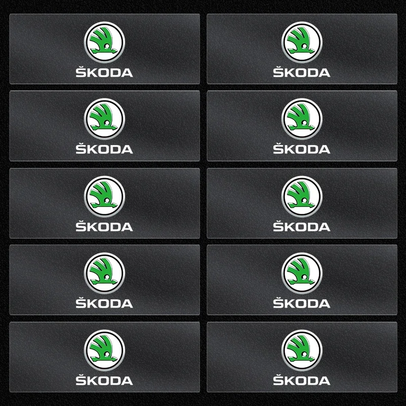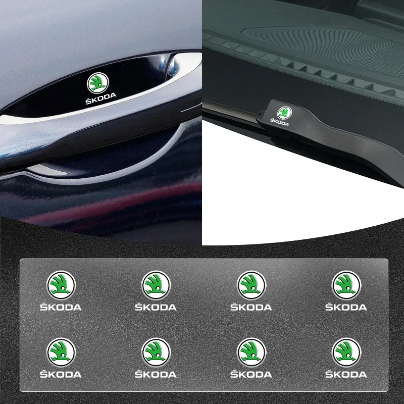 Enhance your vehicle’s interior and exterior with this set of transparent PVC stickers designed specifically for Skoda models. Featuring the iconic circular green Skoda emblem and crisp “ŠKODA” text, these sleek, modern decals seamlessly blend into your car’s surfaces with a minimalist aesthetic. Suitable for various parts like door handles, start-stop buttons, multimedia knobs, and more, these stickers add a subtle touch of personalization and class. Their transparent background and glossy finish ensure a refined and polished appearance, matching dark vehicle surfaces effortlessly. Easy to install, each sticker conforms precisely to different vehicle models, giving you a custom fit. Whether you want to upgrade your car’s look or safeguard its branding, these stickers deliver style, durability, and versatility—all in one package.