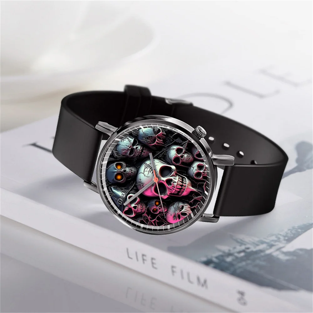 Elevate your style with the JS-HHSDMWQWCB Skull Design Quartz Watch, perfect for both men and women. This trendy timepiece features a minimalist skull design that seamlessly complements any casual outfit. The comfortable black silicone strap ensures a snug fit for daily wear, while the durable alloy case adds a touch of elegance. Enjoy the sleek, numberless display that enhances its modern appeal. Lightweight and easy to wear, this watch is the ideal accessory to complete your look. Picture yourself sporting this unique watch, drawing the right attention wherever you go! Embrace elegance combined with comfort today.
