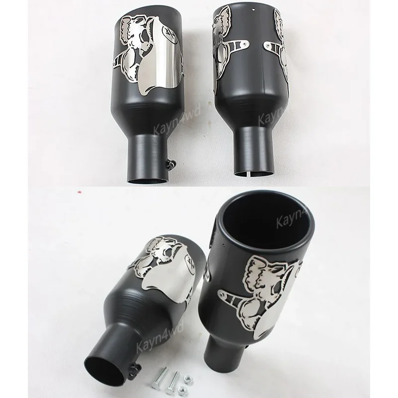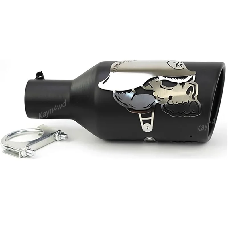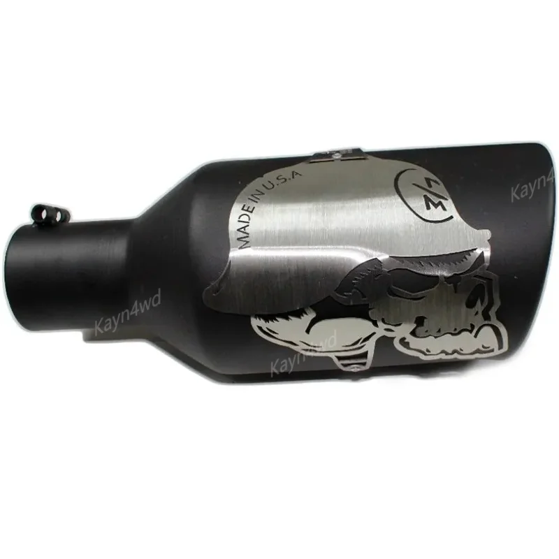 - Features a bold skull graphic etched onto the smooth, cylindrical exterior, emphasizing an aggressive, custom look perfect for off-road enthusiasts.