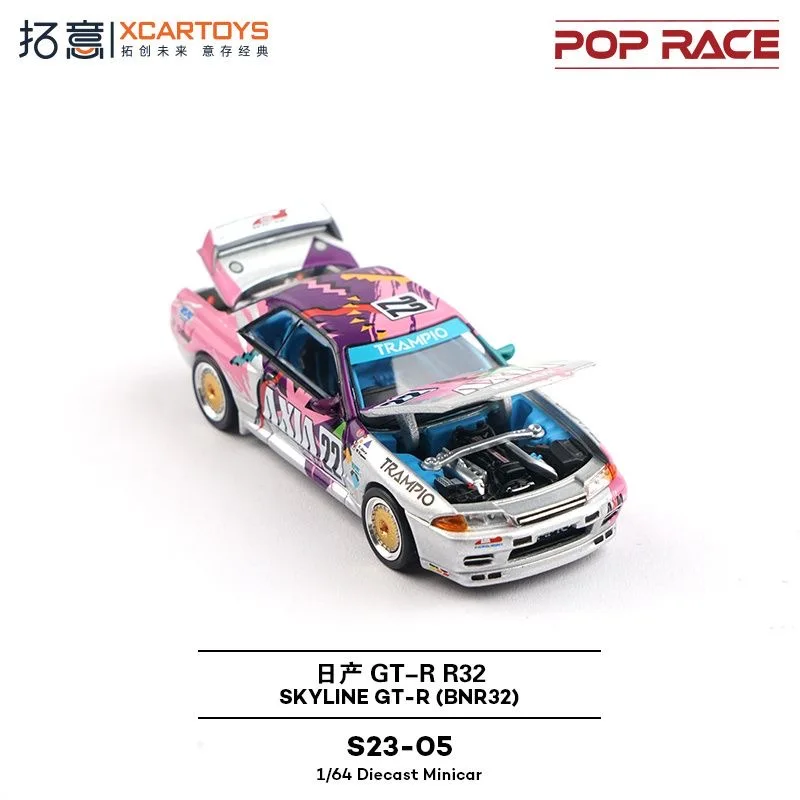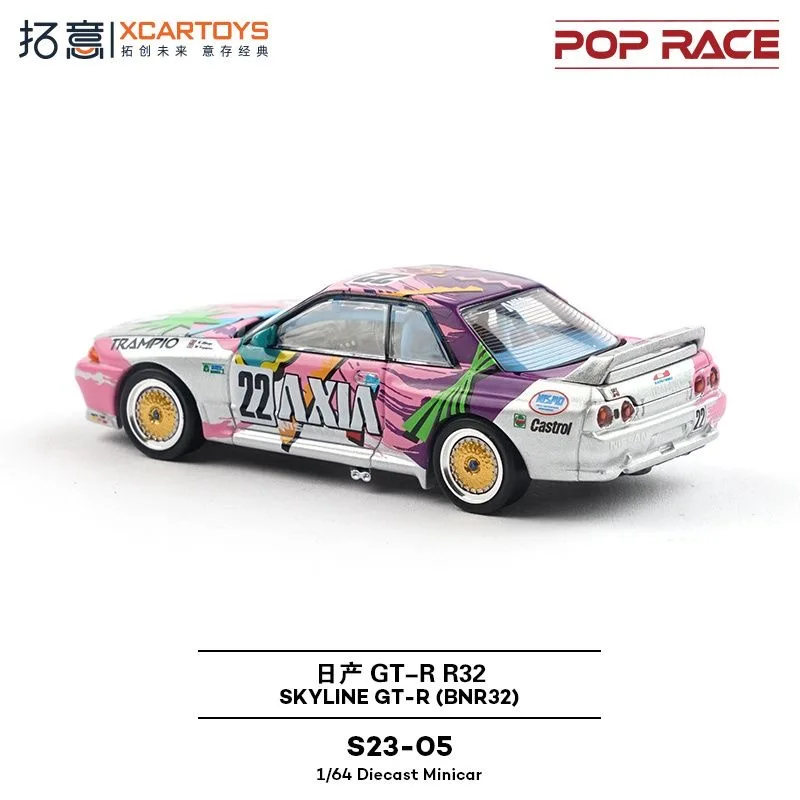Experience the thrill of racing right on your shelf with this exquisite 1:64 scale diecast model of the Skyline GT-R R32 Touring Car. With its striking white body adorned with vibrant pink, green, and black graphics, this model captures the essence of automotive excellence. The iconic racing number “22” is boldly displayed, along with distinct branding elements that enhance its sporty allure. Complemented by gold-colored wheels, this model not only adds a stylish touch but also showcases the detailed front grille and headlights characteristic of the GT-R design. Perfect for collectors and enthusiasts, this model promises to elevate your collection with its breathtaking aesthetics and craftsmanship.