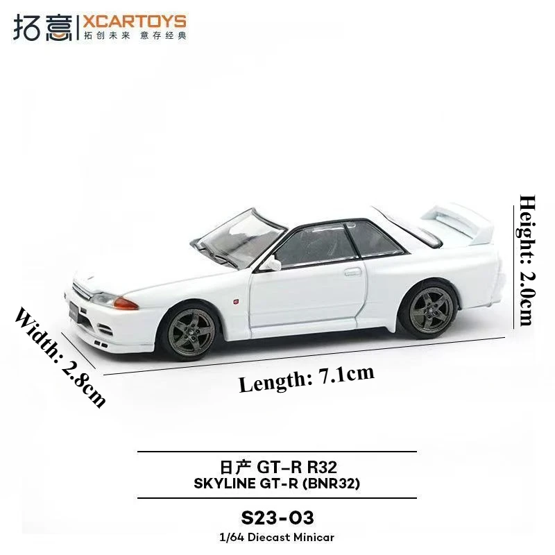 - Compact dimensions and detailed rear spoiler that extends across the trunk, capturing the dynamic essence of the original Skyline GTR R32.