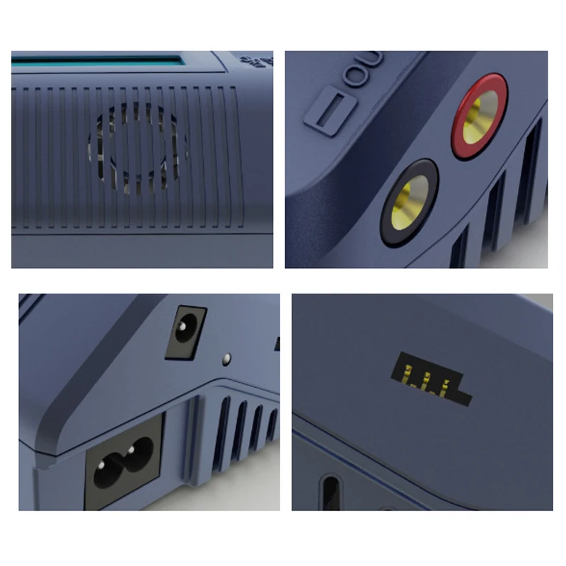 Experience reliable, high-performance power management with this SKYRC e680 multi-chemistry charger. Its sleek, compact design features durable dark blue plastic with a modern, industrial aesthetic. The prominent, backlit blue LCD screen displays real-time charging data, blending functionality with a high-tech look. The intuitive horizontal control buttons below the display provide easy navigation for all settings. Multiple ports on the right side, including balance sockets, temperature probes, and power inputs, ensure versatile connectivity. Ventilation slits on the top and sides enhance heat dissipation, maintaining optimal performance. Ideal for hobbyists and professionals, this charger supports a wide range of batteries, offering precision and safety in every charge. Its modern style perfectly combines practicality with aesthetic appeal, making it a perfect addition to your setup.
