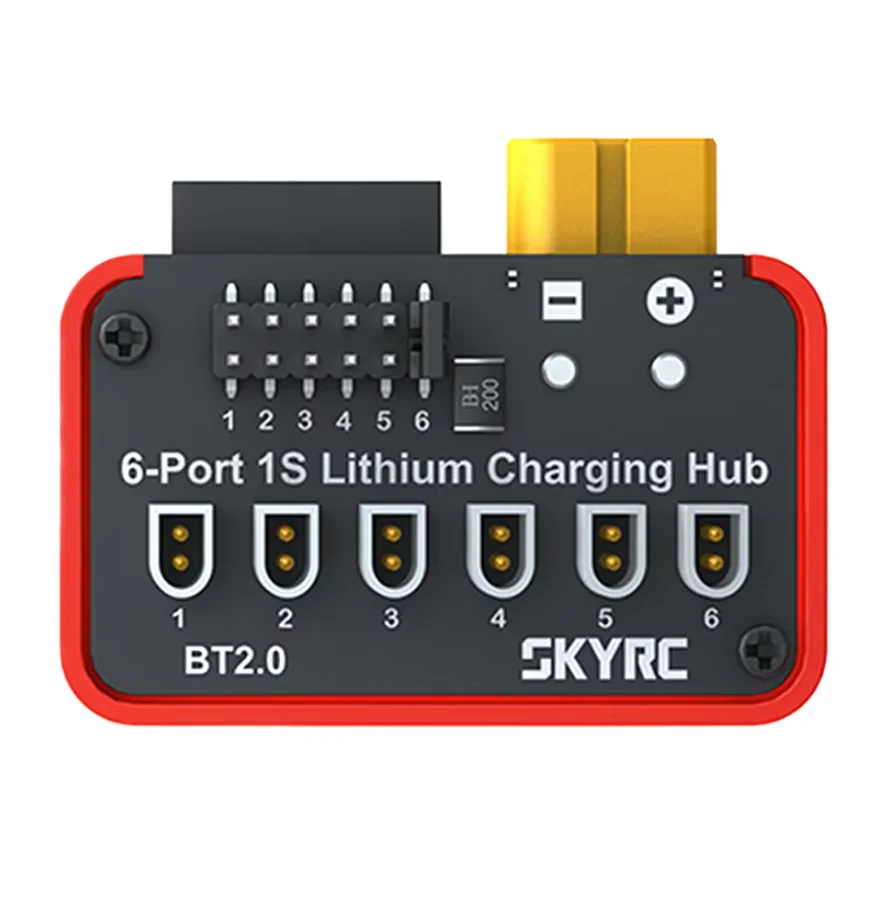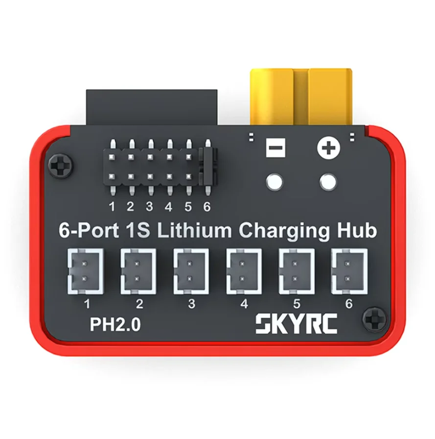 Experience efficient and reliable charging with the SkyRC OSH 6-Port 1S Lithium Battery Charging Hub, designed to support LiPo, LiFe, Li-ion, and LiHV batteries. Featuring six adjustable charging ports compatible with BT2.0 or PH2.0 connectors, it delivers a maximum output current of 2.0A per port for swift, simultaneous charging. Its compact size of 50.5 x 39 x 34.5 mm and lightweight construction (approximately 20g) make it ideal for portable setups. Suitable for use with popular charger models such as B6neo, B6ACneo, B6neo+, and B6neo 2, this device ensures an organized, stylish, and efficient workflow for hobbyists and professionals alike.