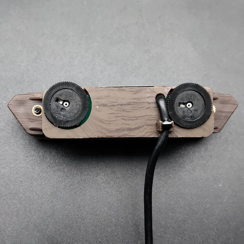 Imagine effortlessly elevating your acoustic playing experience with this beautiful Skysonic Passive Acoustic Guitar Sound Hole Humbucker A-810. Designed with a warm, natural wood finish, it seamlessly blends into your guitar’s appearance, offering a minimalist and refined aesthetic. Its rectangular shape and smooth, polished surface highlight the organic beauty of the wood grain. Equipped with five subtle control knobs, it provides easy access to volume and tone adjustments, allowing you to craft your perfect sound. The black cable creates a sleek contrast, while the metal endpin with leather fixture ensures a secure, damage-free connection. Whether you’re performing live or recording at home, this pickup delivers a balanced, warm tone with effortless installation.