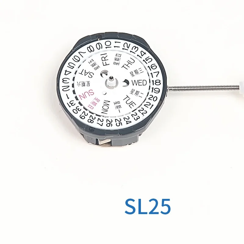 Enhance your watch repair project with this durable quartz movement compatible with models SL25 and SL28. Featuring a sleek, metallic oval design with a polished finish, it includes a 2.6cm dual calendar date display and a small white gear wheel at the center for precise timekeeping. Weighing only 15 grams, this replacement part is easy to install and remove, making it ideal for watchmakers and enthusiasts. Crafted from high-quality materials, it ensures durability and longevity, blending modern technology with traditional craftsmanship. Suitable for repairing or assembling watches, this movement is a reliable choice to restore the functionality and style of your timepiece.