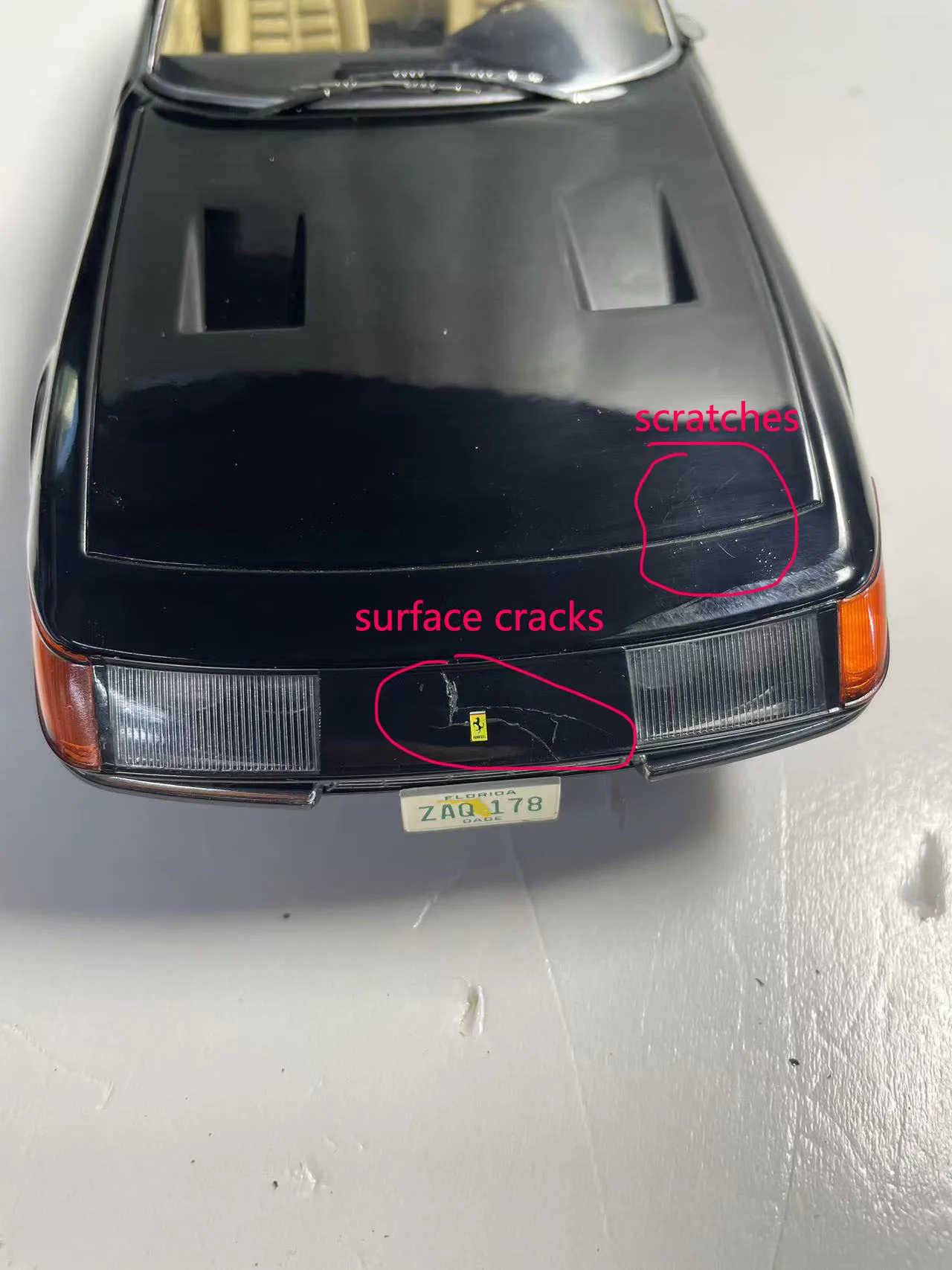 - The model does not open or have electronic features; it is purely for display, with surface paint flaws including scratches, reflecting its handcrafted nature and collectible purpose.