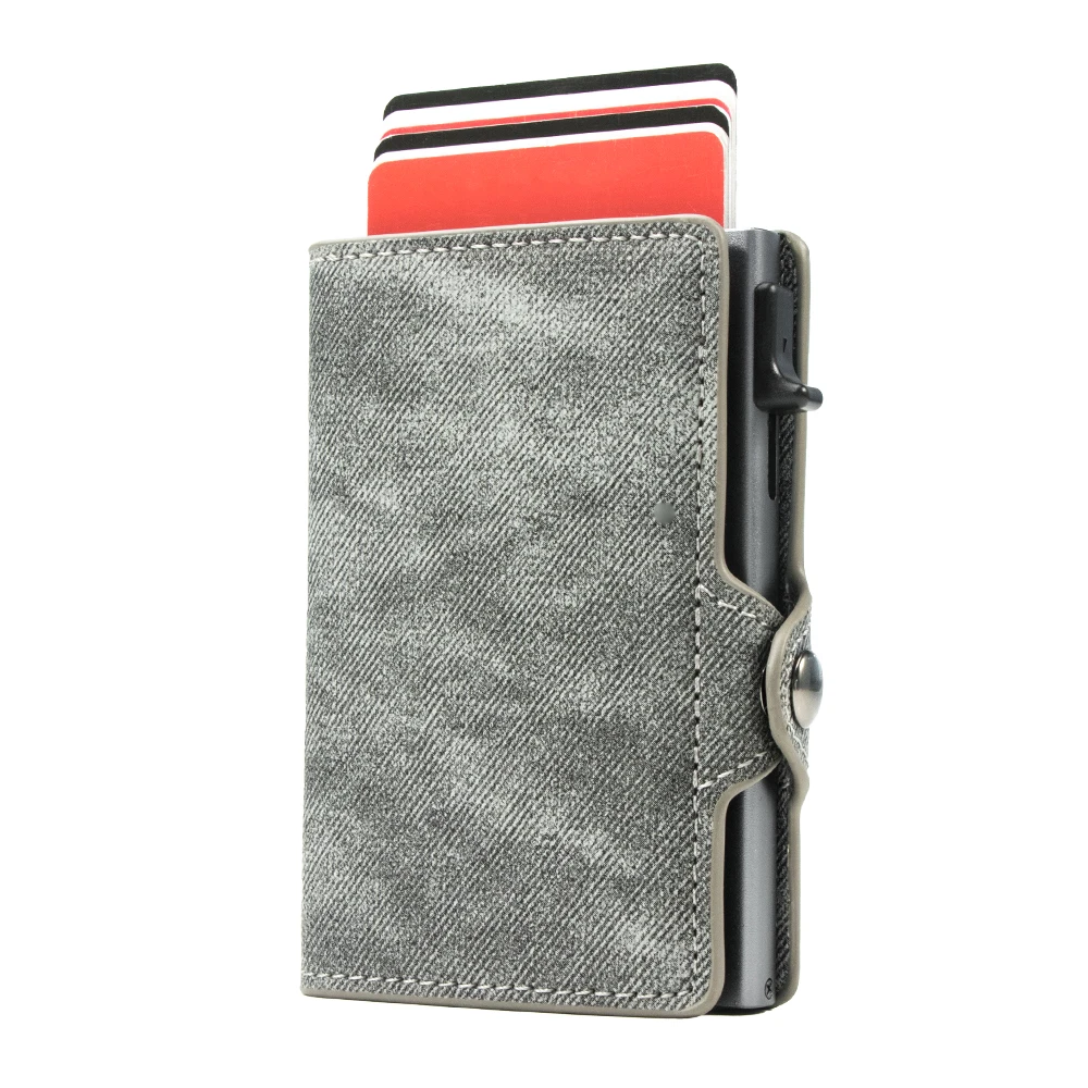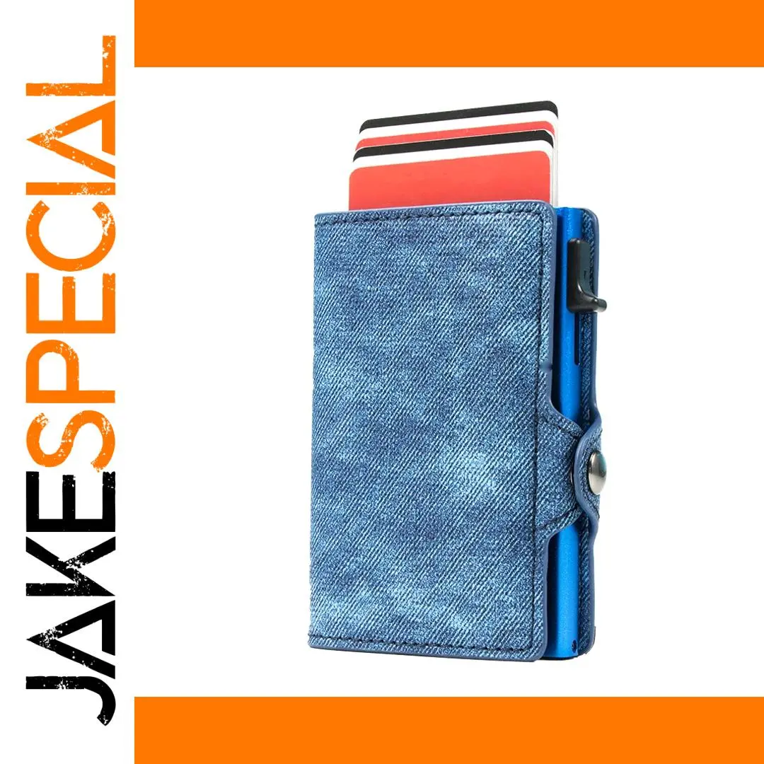Elevate your everyday carry with this Slim Minimalist Denim Leather Pop Up Credit Card Wallet. Designed for both men and women, it features a sleek profile and RFID blocking technology to keep your cards safe from unauthorized scans. With a capacity for 4-6 cards and an automatic pop-up mechanism, accessing your essentials is effortless. Available in a variety of colors, this stylish wallet combines durability with a vintage aesthetic, making it the perfect companion for anyone who values functionality and flair. Experience the convenience of a smart wallet that seamlessly blends into your lifestyle.