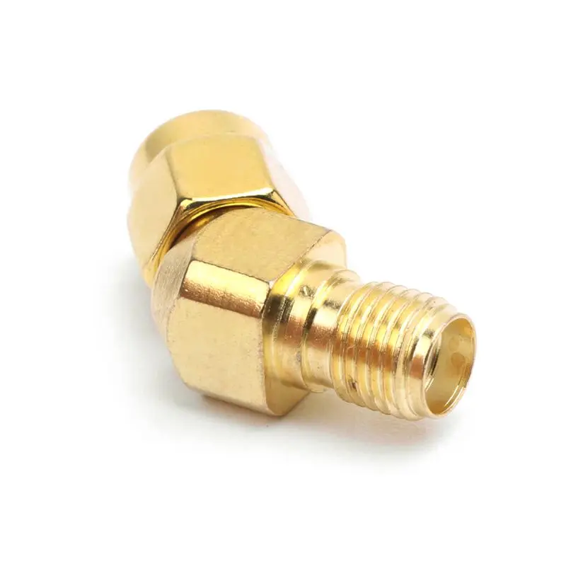 Experience a seamless connection with this premium SMA male to SMA female adapter designed specifically for FPV race goggles and antennas. Crafted from durable brass with a shiny, gold-plated finish, it offers excellent corrosion resistance and a sleek, metallic look. The adapter features a precise, compact construction measuring approximately 16mm by 17mm, making it ideal for tight spaces and high-frequency applications. Its unique 45° or 135° beveled body allows for flexible cable routing, reducing strain and enhancing system reliability. Whether you're building or maintaining your FPV setup, this adapter ensures a secure and stable connection, improving overall signal quality and performance. Its high-quality design guarantees longevity and exceptional RF signal transmission for demanding drone racing environments.
