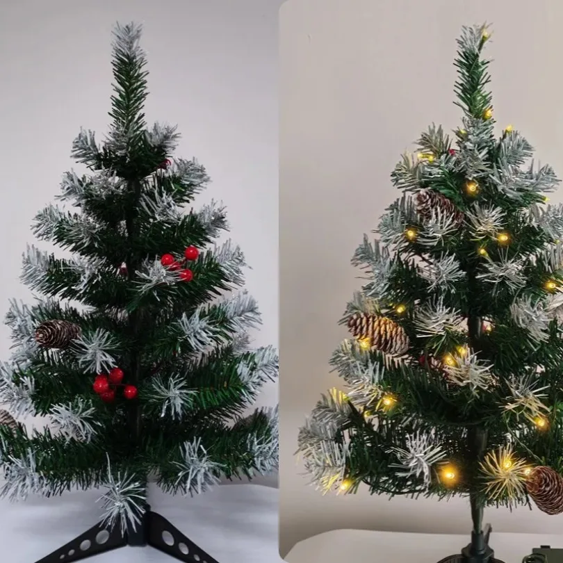 Imagine transforming your space with this beautifully crafted small Christmas tree that combines natural elegance with modern style. Designed in two sizes—45cm and 60cm—it features lush, full branches coated in a realistic mix of green and snow-dusted white spray. Decorative pinecones and bright red fruits are thoughtfully placed among the dense branches, adding rustic charm and vibrant color. The tree’s simple design makes it perfect for creating a warm holiday atmosphere in your home, hotel, or shopping mall. Its environmentally friendly PVC construction ensures durability and safety, making it an ideal centerpiece of your seasonal decor. Whether illuminated or not, this tree’s aesthetic appeal remains timeless and inviting, enhancing any festive environment effortlessly.