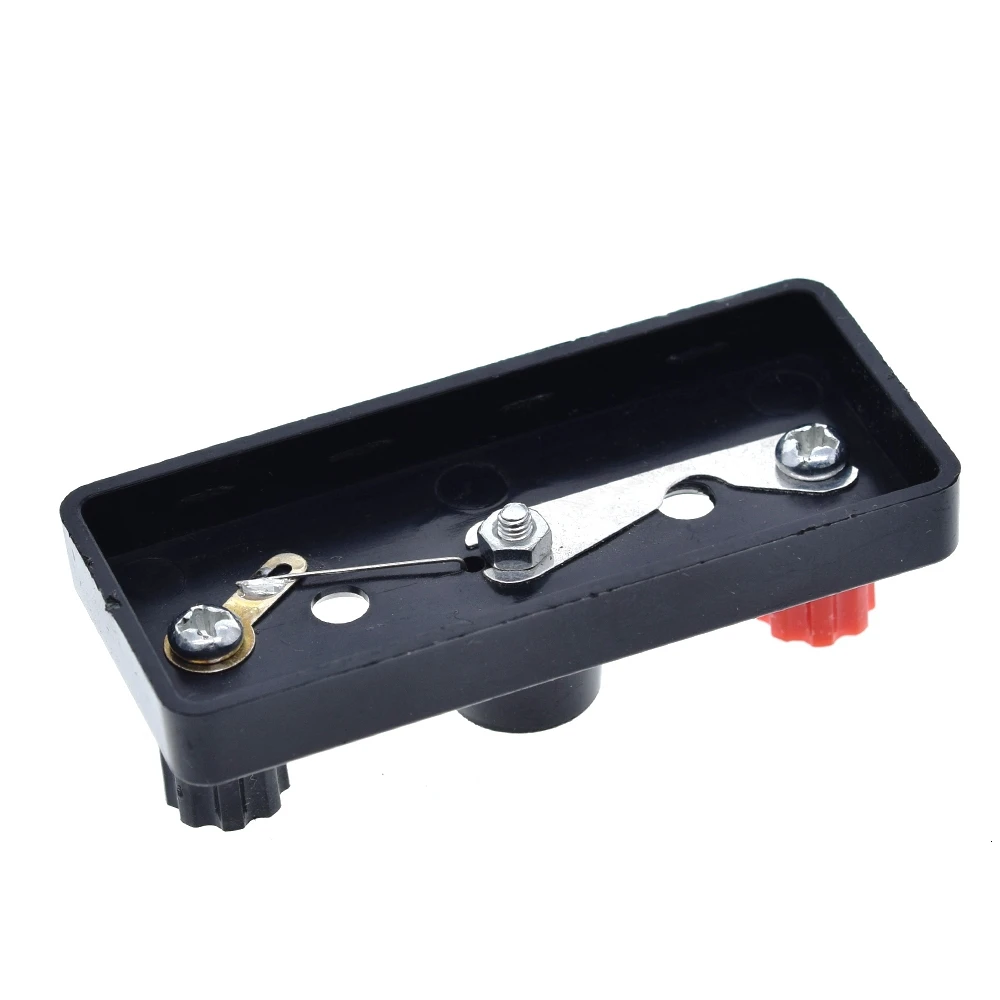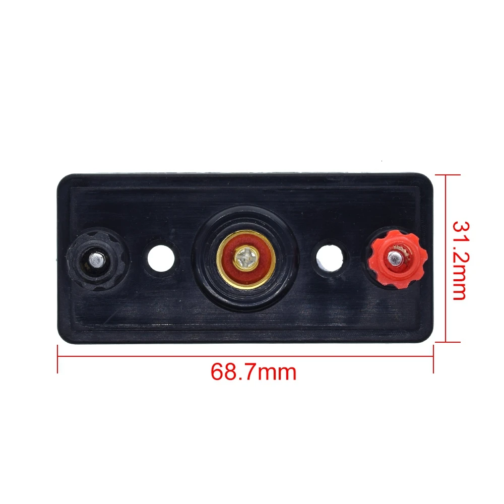 Enhance your physics experiments with this versatile small lamp base set, available in 1 or 3 pieces, crafted from durable plastic and metal. Measuring 7.5 cm x 3.5 cm x 2.5 cm, these bases feature a black plastic matte finish and a brass-colored threaded socket for secure mounting of lamps or sensors. Equipped with black and red terminal connectors with ridged grips, they provide clear visual distinctions for easy connections. Designed for educational use, these voltage regulators are compatible with electronic modules, switches, and sensors, especially for STM hardware, operating effectively between -40°C and +85°C. Ideal for DIY computer-based science projects.