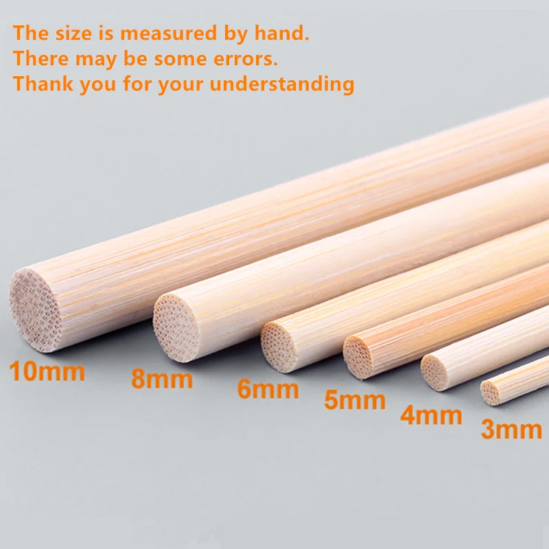Elevate your crafting experience with this collection of small solid bamboo sticks, perfect for DIY projects. Offering various diameters — 3mm, 4mm, 5mm, 6mm, 8mm, and 10mm — all sticks come with a consistent length of 30 cm. Their natural light beige color exposes the fine grain and texture inherent to bamboo, providing an earthy aesthetic that's visually appealing. With evenly cut ends ensuring a smooth finish, these sticks are not only functional but also organized for easy handling. Whether you're building models or engaging in creative hobbies, these versatile bamboo sticks will inspire you to bring your ideas to life.