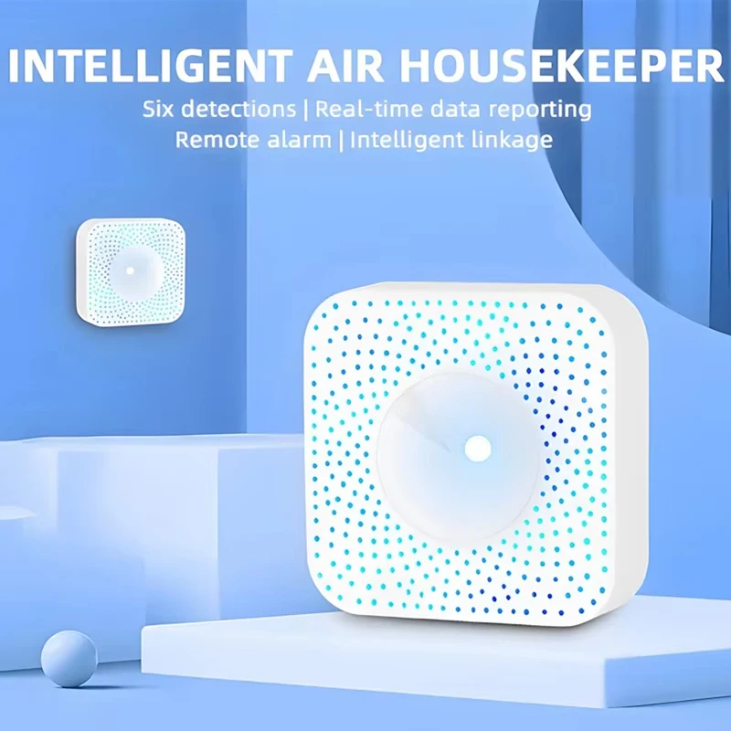 - Detects six environmental parameters: PM2.5, formaldehyde, VOCs, CO2, temperature, and humidity, providing comprehensive air quality insights for healthier living spaces.