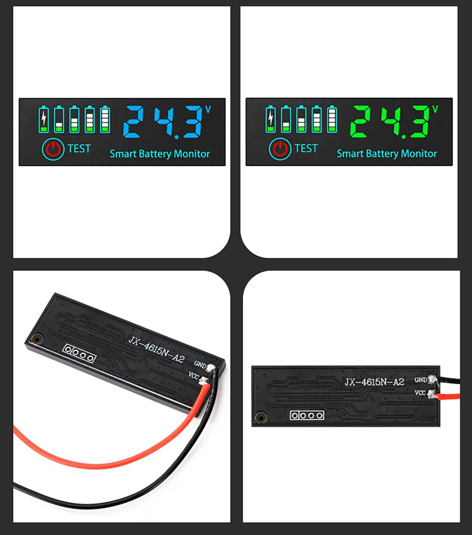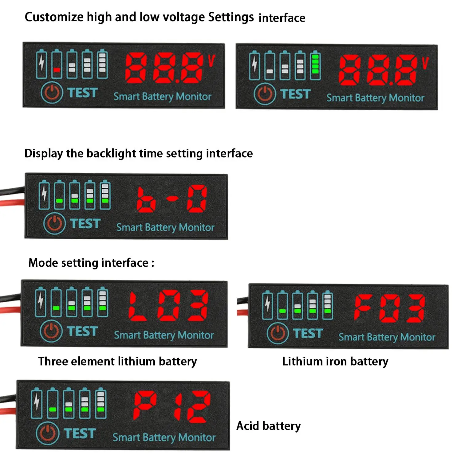 - Features high-brightness LEDs to visually display voltage and remaining capacity, with customizable high/low voltage thresholds for accurate monitoring tailored to specific applications.