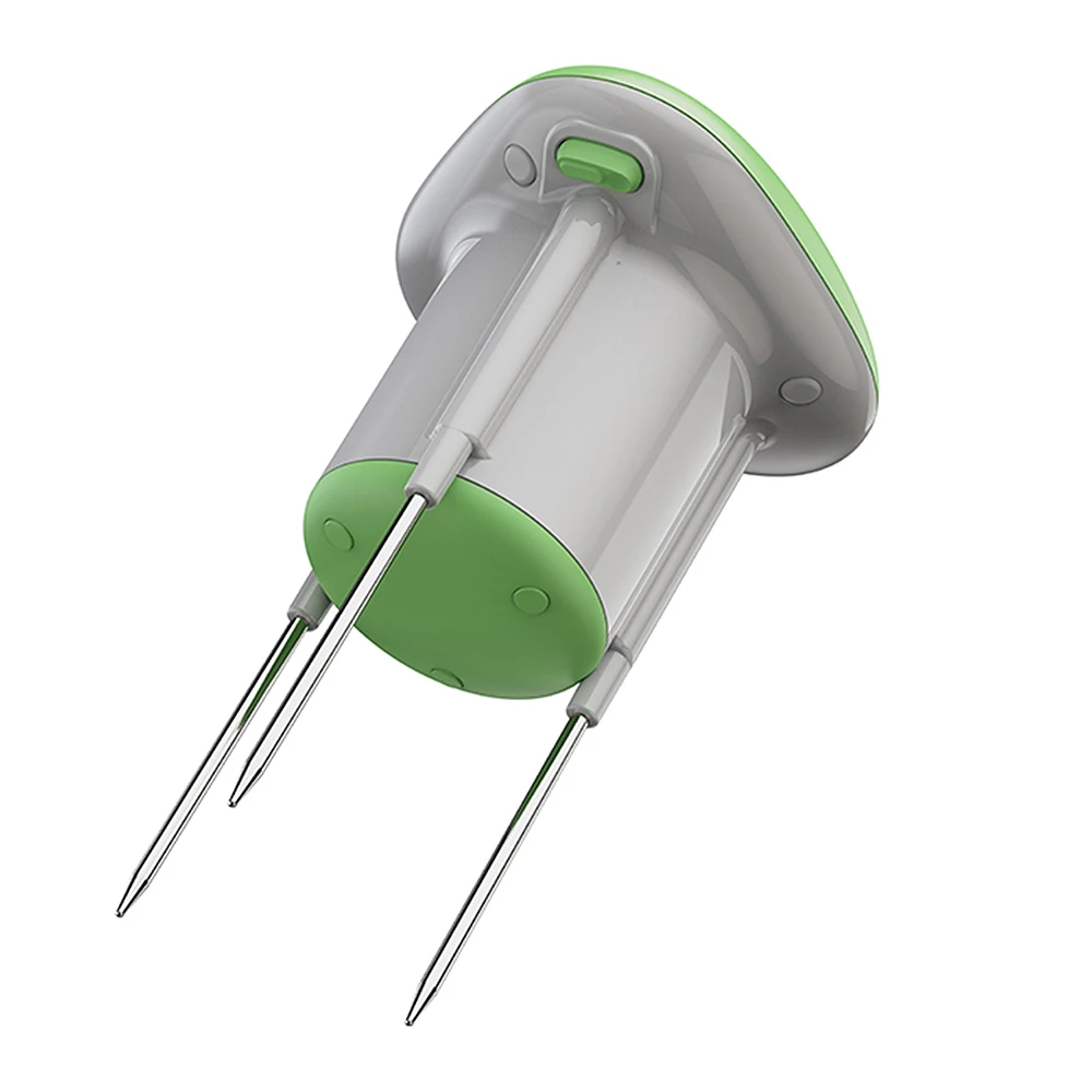 Imagine effortlessly keeping track of your garden or turf’s soil conditions with this innovative soil sensor. Its sleek, compact design, featuring a glossy white exterior with vibrant green accents, blends seamlessly into outdoor environments. The embedded black solar panel on top ensures continuous operation by harnessing solar energy, providing a reliable, eco-friendly power source. The slim, pointed metal probes extend downward for precise soil contact, measuring temperature, humidity, and conductivity. With a waterproof IP66 rating, this device withstands various weather conditions, giving you peace of mind. Using the dedicated mobile app, you can monitor soil data remotely, set sensitivity adjustments, and receive real-time alerts. It's perfect for creating a smart, sustainable gardening experience tailored to your environment.