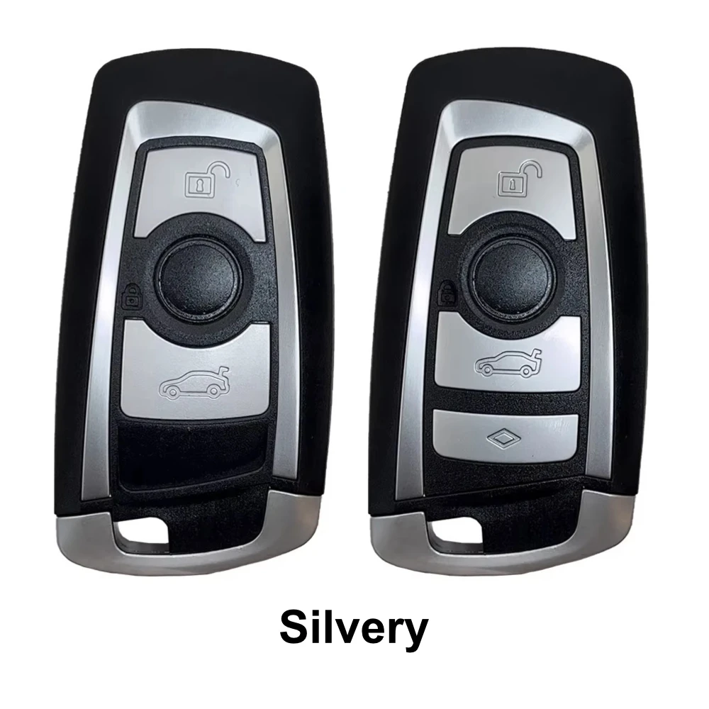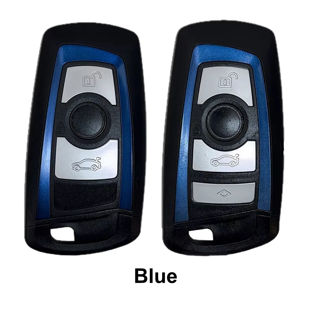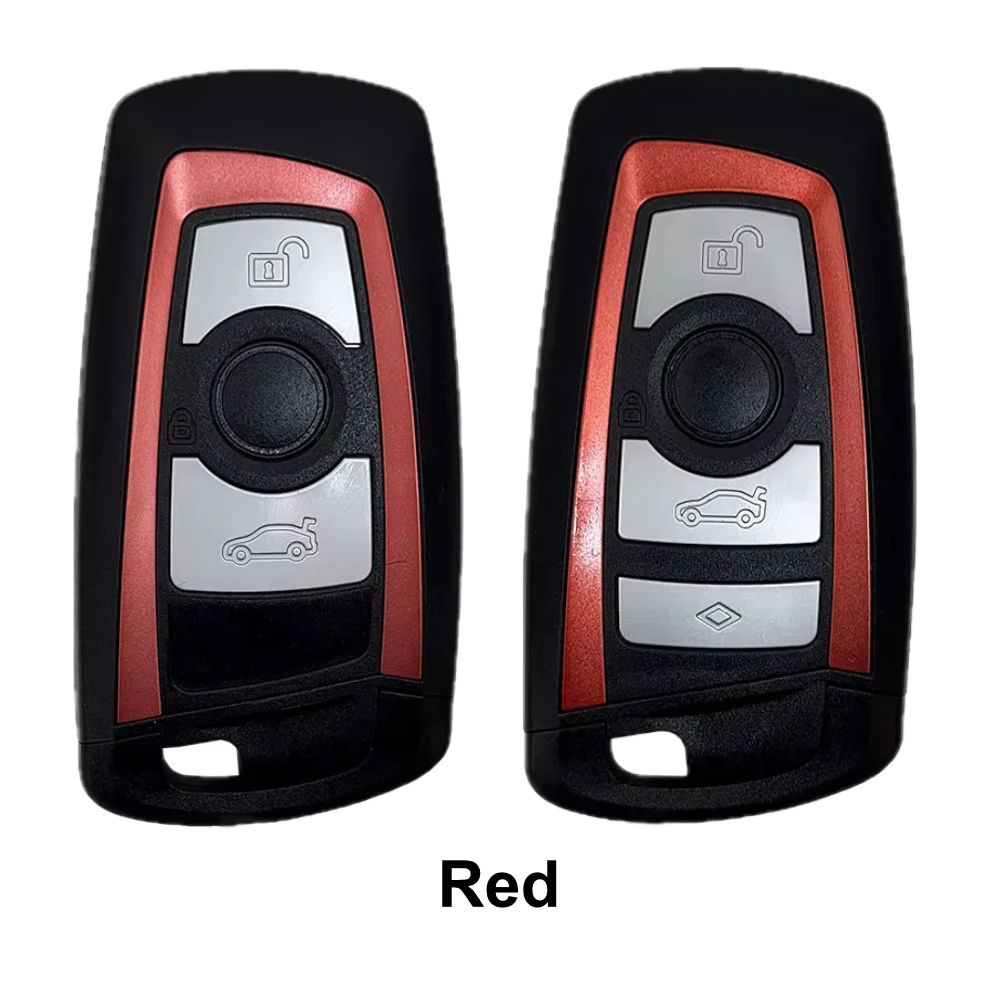Elevate your BMW experience with our Smart Remote Car Key Shell Fob, specifically designed for F Series 3/5/7 models from 2009 to 2016. Available in stylish colors: sleek black, vibrant red, and bold blue, these key fobs feature either three or four buttons, each clearly marked with functional pictograms. Crafted from durable plastic and metal, they boast a smooth, rounded rectangular design with a central circular button for locking and unlocking, as well as additional features like trunk release on the four-button variant. Enjoy a secure fit and modern aesthetic that complements your BMW.