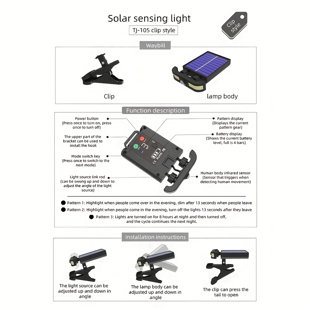 Enhance your outdoor areas with the functionality and style of this smart solar clip light. It's time to enjoy a well-lit ambiance at night and experience the ease of solar energy. This innovative solution will not only brighten your pathways but also provide peace of mind during evening activities. Once you experience its charm and efficiency, you’ll wonder how you ever lived without it! Embrace outdoor living with confidence and elegance today.
