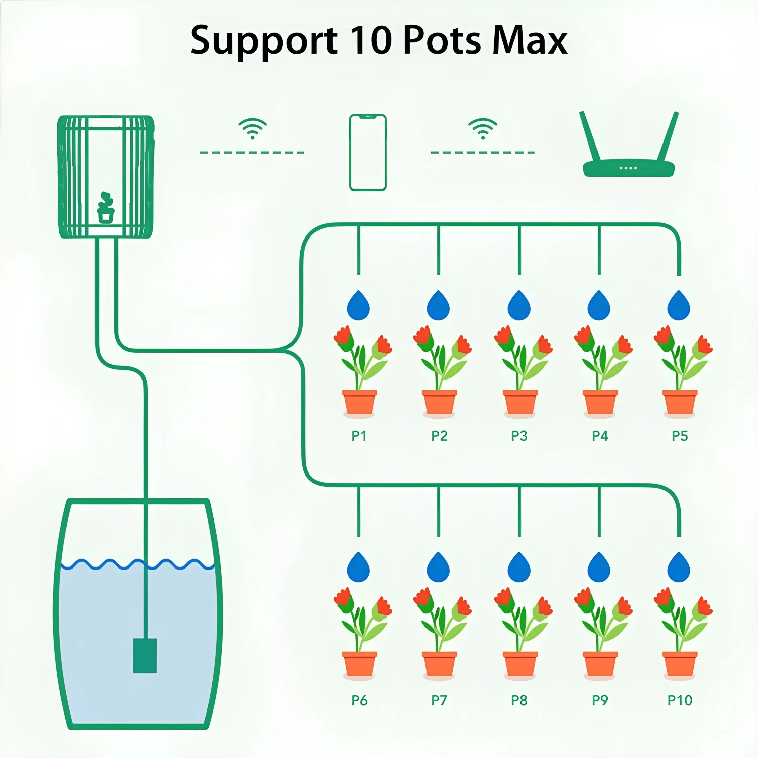 - Supports scheduled, limited, and remote watering via mobile app, family sharing, and scene linkage for flexible, user-friendly plant watering management.