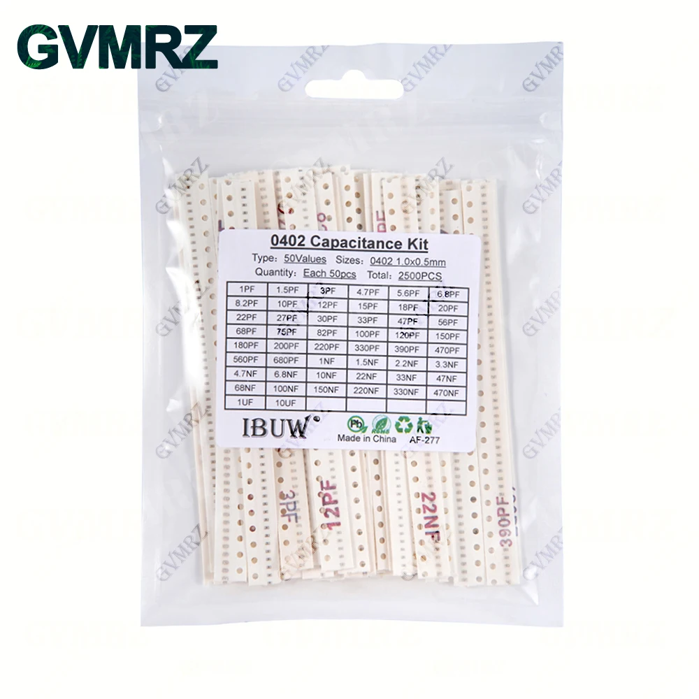 - Contains 2,500 pieces of 0402 size capacitors, suitable for compact circuit designs and high-density PCB layouts, offering a versatile range for various electronic applications.