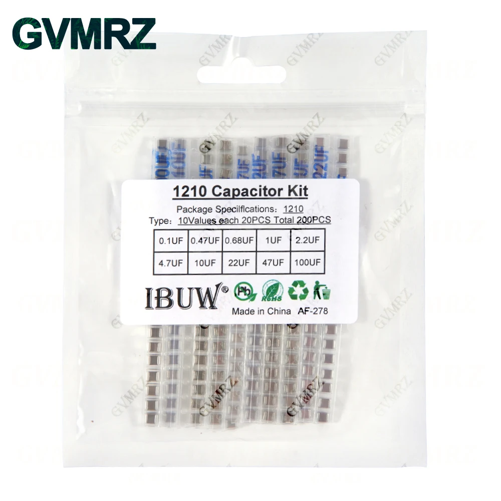 - Provides 1,040 pieces of 1206 capacitors and 200 pieces of 1210 capacitors, suitable for applications demanding higher voltage and power handling capabilities.