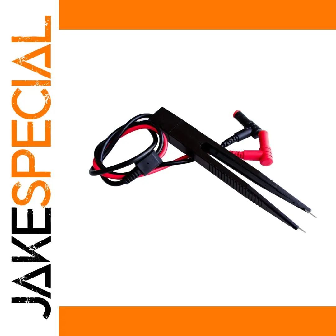 Imagine seamlessly diagnosing your electronic components with this this innovative testing tool. Its sleek, matte black plastic body offers a modern, professional look while providing durability and comfort during use. The pointed metal tips deliver pinpoint accuracy, making contact with tiny SMD components effortless. A transparent window reveals essential measurement information, blending style with functionality. The bundled red and black insulated wires are flexible and coiled, enhancing maneuverability and organization. Designed for precision, versatility, and reliability, this tool simplifies testing resistors, capacitors, inductors, and chip components, allowing you to work efficiently on complex electronic circuits. Its compact, ergonomic form fits comfortably in your hand, perfect for both casual hobbyists and professional technicians.