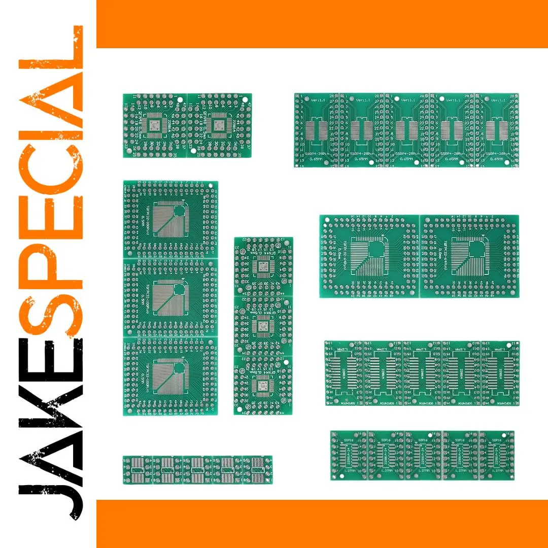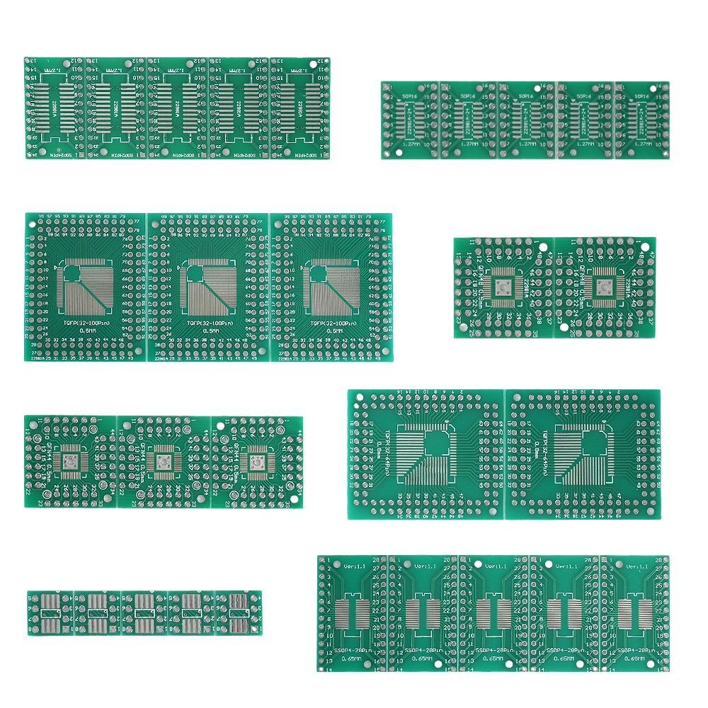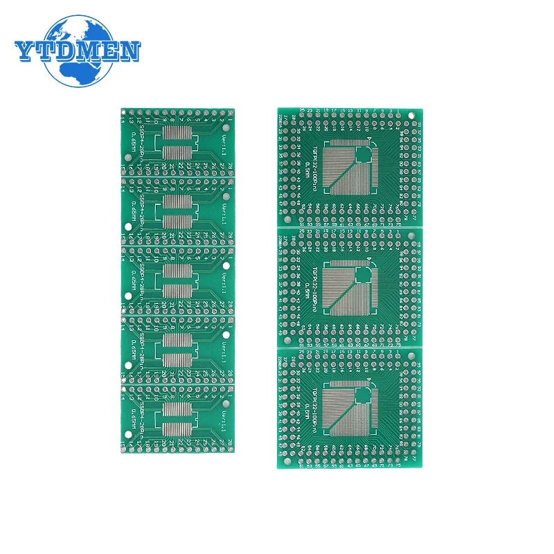 Enhance your electronic projects with this versatile PCB board kit featuring 30 pieces of adapter plates designed for converting SMD packages such as FQFP, HTQFP, QFN48, SOP, SSOP, and TSSOP (sizes 8, 16, 24, 28, 32, 44, 64, 80, and 100) into through-hole DIP formats. Crafted with standard copper thickness, board thickness, and surface finishing, these adapters showcase precise, minimalist layouts with drilled holes, pads, and traces optimized for reliable soldering and prototyping. Perfect for circuit testing, development, and customization, this universal kit offers a highly functional and professional appearance for all your electronic application needs.