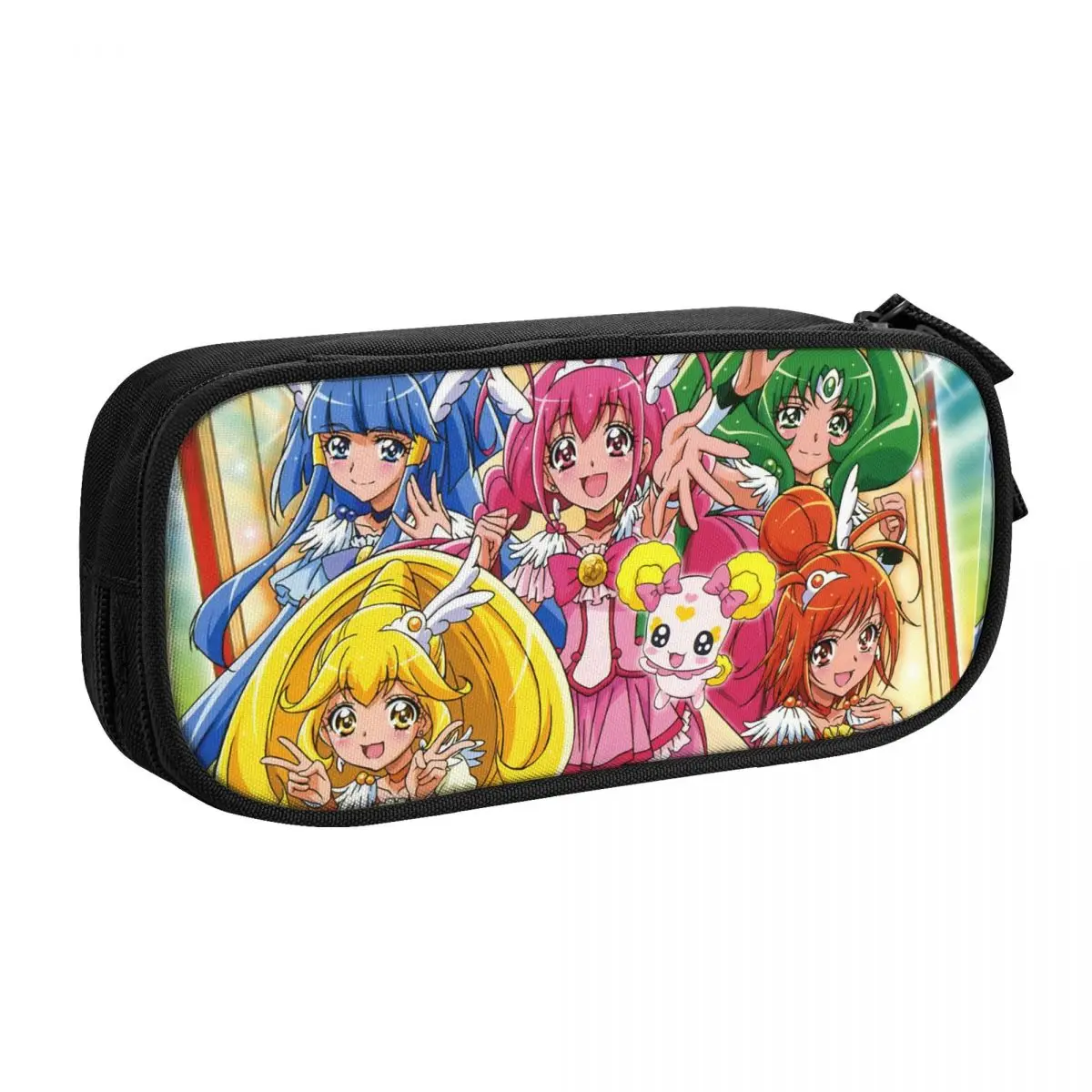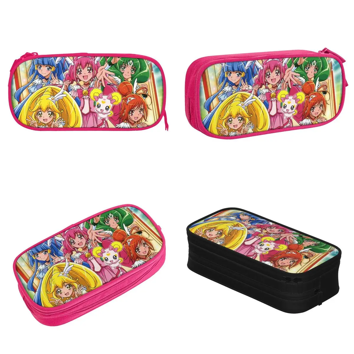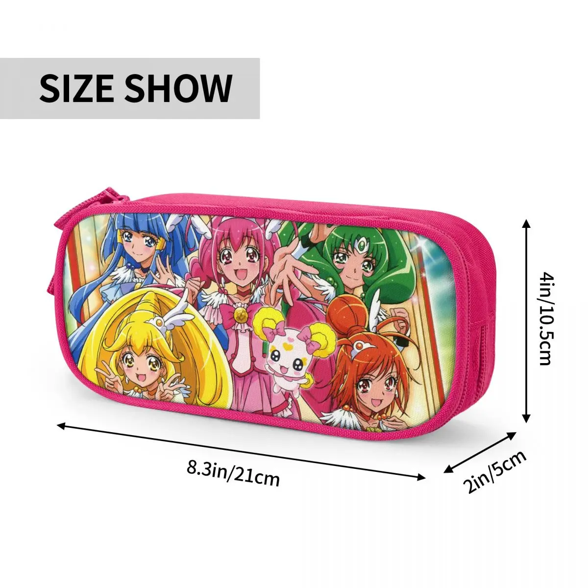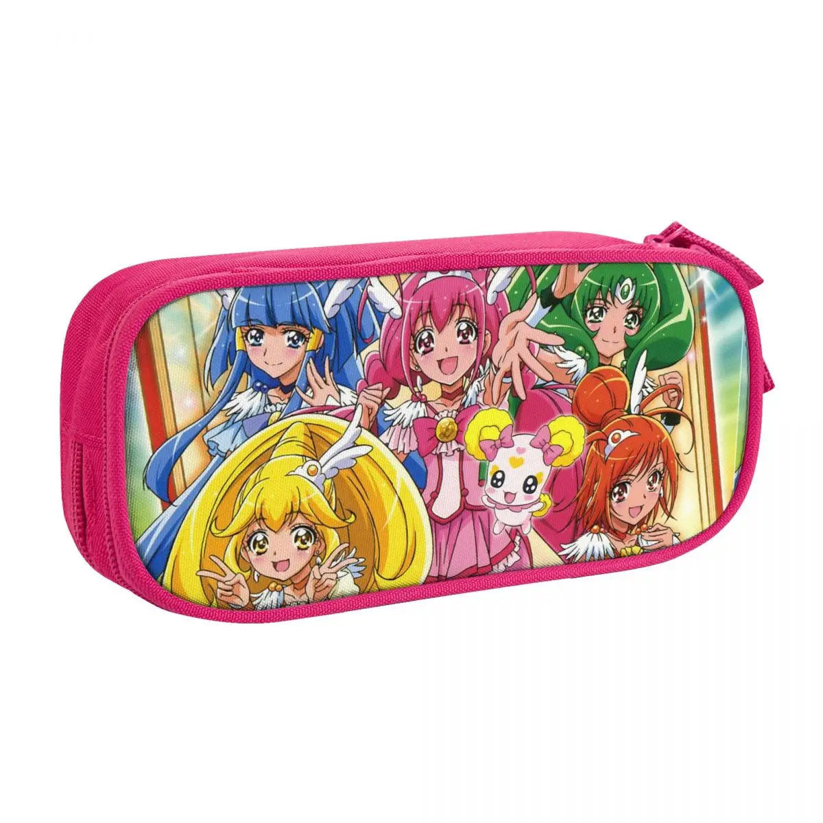 This vibrant pink pencil case brings the delightful characters from the “Smile Precure” anime series right to your fingertips. With a charming design that showcases five animated characters in lively poses, it’s not just an accessory but a piece of art for your school or office supplies. The rounded rectangular shape ensures ample storage for your pens, pencils, and other stationery items. Made from soft yet durable fabric, it features a smooth zipper closure that enhances its practicality. Open it up to find a well-organized interior, perfectly designed for easy access to your essentials. Overall, this pencil case combines fun and functionality in one stunning package!