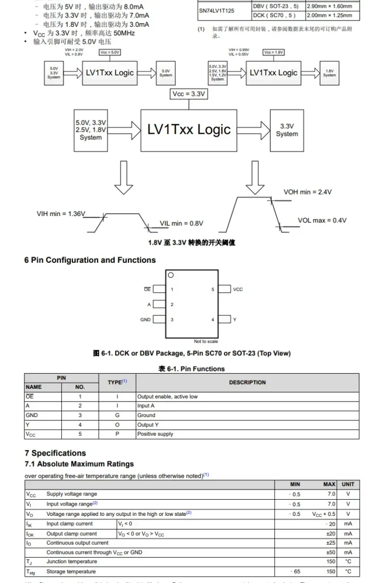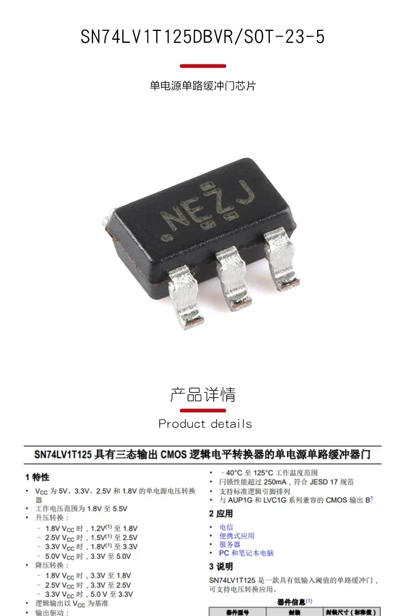 Key features of the SN74LV1T125DBVR buffer chips