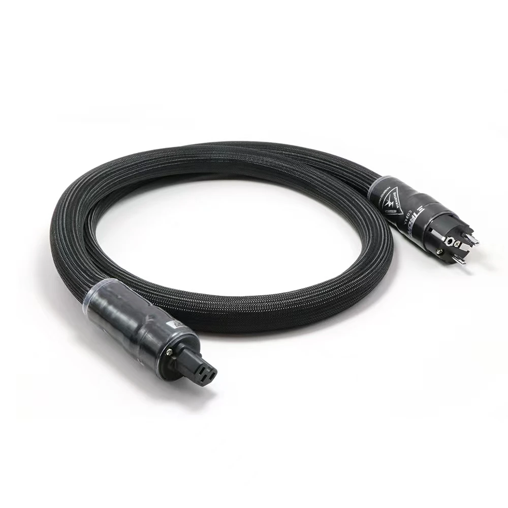 Experience premium audio performance with this high-quality Snake King flagship power cable, designed for discerning audiophiles. Its sleek black braided exterior not only provides durability but also adds a professional, sophisticated look to your setup. The sturdy metallic connectors, finished with a polished silvery sheen, are accented by a distinctive yellow band, emphasizing quality and attention to detail. Available in US or EU versions, and in lengths of 1 meter, 1.5 meters, 2 meters, or 2.5 meters, this cable seamlessly fits various high-fidelity audio systems. Its design minimizes electrical noise and interference, helping you unlock your system’s full potential and enjoy pure, crystal-clear sound. Elevate your audio experience today.